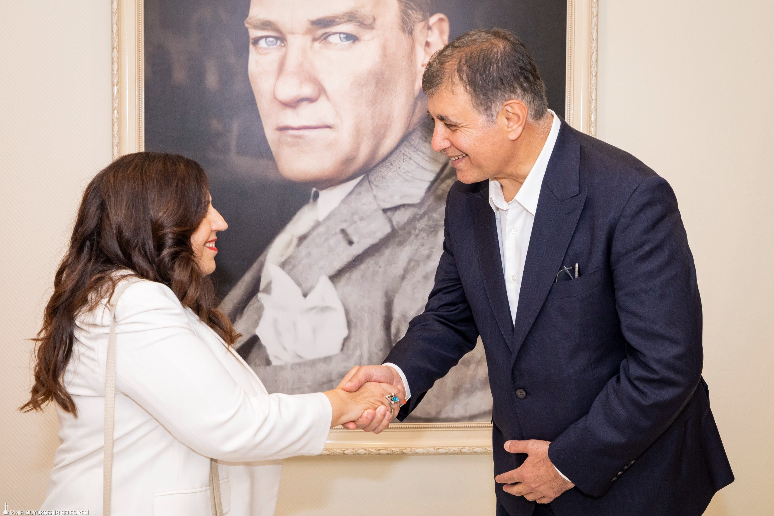 Görev süresi sona eren Kuzey Kıbrıs Türk Cumhuriyeti’nin (KKTC) İzmir Başkonsolosu Ayşen Volkan İnanıroğlu, İzmir Büyükşehir Belediye Başkanı Dr. Cemil Tugay’ı ziyaret etti. Ziyarette; Muavin Konsolos Alpbuğra Bahadır Gültekin, İzmir Büyükşehir Belediyesi Genel Sekreter Yardımcısı ve ESHOT Genel Müdürü Övünç Özgen ve Büyükşehir Belediyesi bürokratları yer aldı. Başkan Tugay, Kuzey Kıbrıs Türk Cumhuriyeti'nde 20 Temmuz 1974 tarihinde Türk Silahlı Kuvvetleri tarafından gerçekleştirilen harekâtın anısını yaşatan Barış ve Özgürlük Bayramı'nı kutladı.