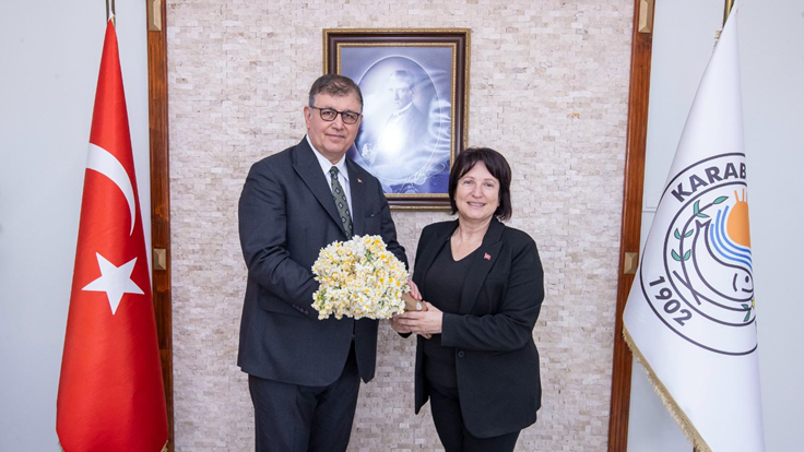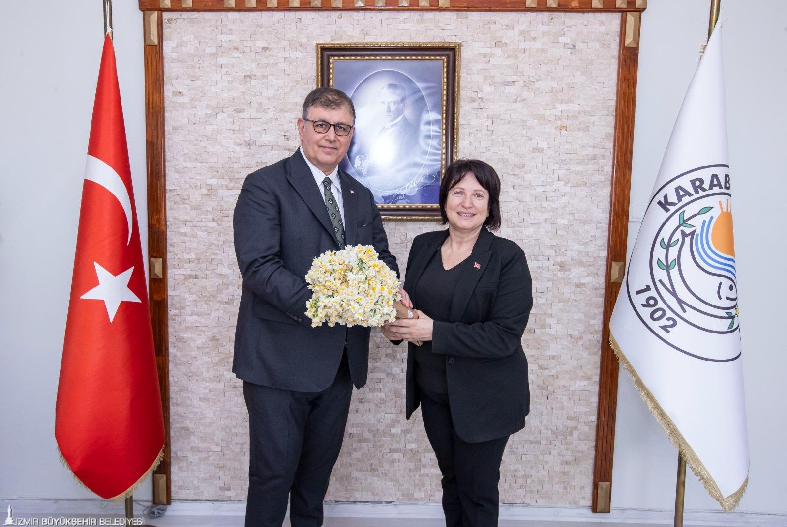 Karaburun Belediye Başkanı İlkay Girgin Erdoğan, Başkan Cemil Tugay’ı ilçelerinde ağırlamaktan büyük mutluluk duyduklarını belirterek, “Büyükşehir bürokratlarımızla bir arada, iletişim halinde uyumlu bir şekilde çalışıyoruz. Yarımadanın sorunlarını kendi sorunlarınız olarak görüp bizimle beraber hareket ettiğiniz için çok mutluyuz, teşekkür ediyoruz” diye konuştu.