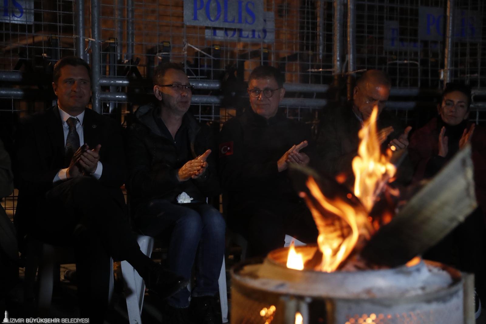 Dayanışma noktasına gelen yurttaşlar arasında her yaştan İzmirliler yer aldı. İzmir’in hakkını savunmak istediğini söyleyen ilkokul öğrencisi minik Cesur, ileride avukat olmak istediğini dile getirdi. Gecenin ilerleyen saatlerinde havanın soğumasıyla birlikte barikat önünde ateş yakıldı. Bağlamalarıyla gelen yurttaşlar, hep bir ağızdan türküler söyledi. Başkan Tugay da türkülere eşlik etti. Gece boyunca şiirler okundu, çorbalar içildi, ekmekler paylaşıldı.