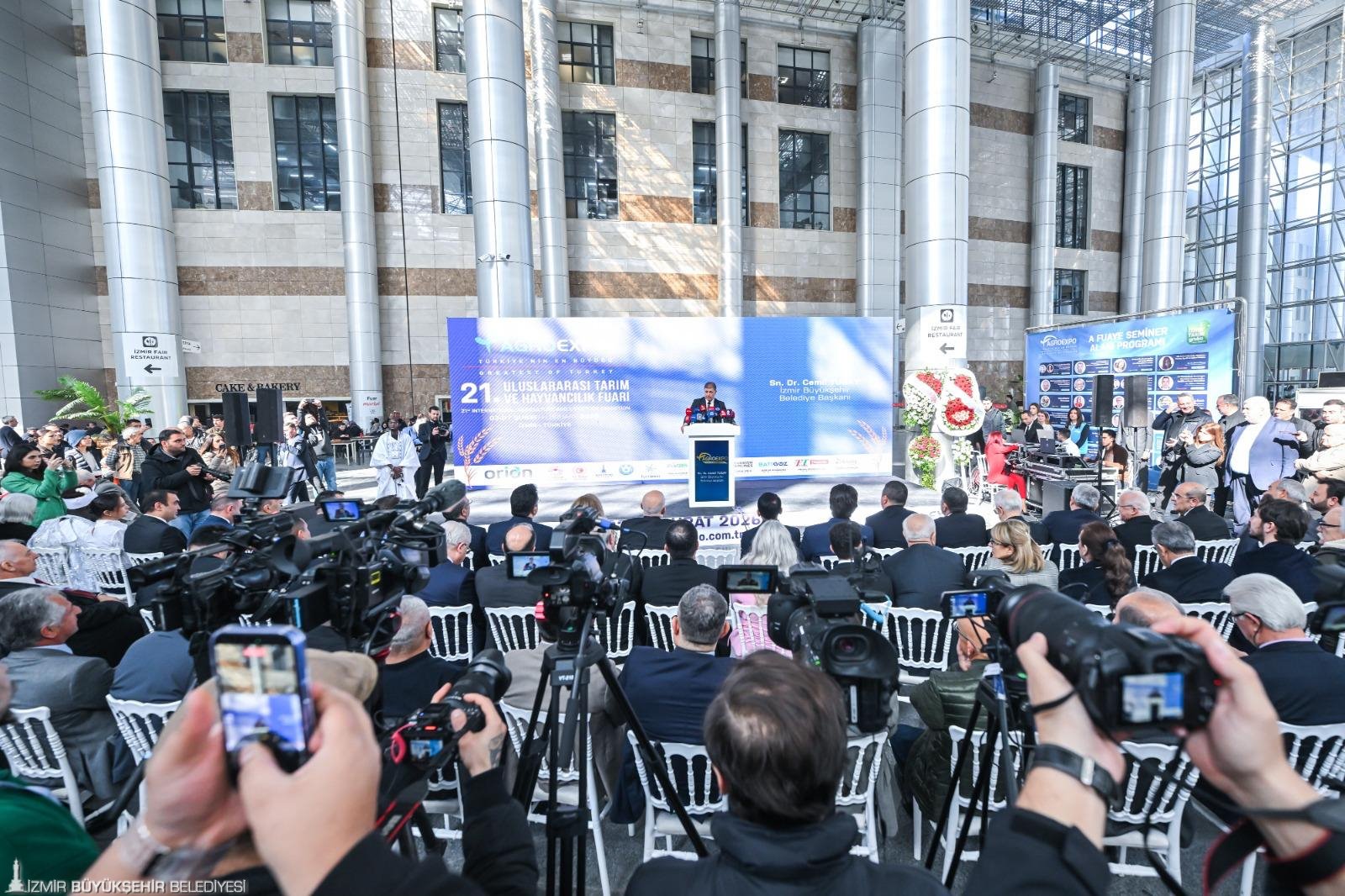 Türkiye’nin en büyük, Avrupa’nın ise sayılı tarım fuarları arasında yer alan Agroexpo – Uluslararası Tarım ve Hayvancılık Fuarı, Fuar İzmir’de kapılarını açtı. Orion Fuarcılık tarafından bu yıl “Hayat Veren Su” temasıyla 21’inci kez düzenlenen fuar, 7 Şubat’a kadar ziyaret edilebilecek. İzmir Büyükşehir Belediye Başkanı Dr. Cemil Tugay’ın ev sahipliğindeki açılış törenine; Özbekistan Tarım Bakanı Yardımcısı Tulkin Sattarov, CHP Tarım ve Orman Politikaları Kurulu Başkanı Sencer Solakoğlu, İYİ Parti Ekonomi Politikalarından Sorumlu Genel Başkan Yardımcısı Burak Dalgın, İYİ Parti Tarım Politikalarından Sorumlu Genel Başkan Yardımcısı Kadir Ulusoy, Selçuk Belediye Başkanı Filiz Ceritoğlu Sengel, Bayındır Belediye Başkanı Davut Sakarsu, Tire Belediye Başkanı Hayati Okuroğlu, Dışişleri Bakanlığı İzmir Temsilcisi Yeşim Kebapçıoğlu, İzmir Ticaret Odası Meclis Başkanı Selami Özpoyraz, İzmir Ticaret Borsası Meclis Başkanı Ömer Gökhan Tuncer, Ege Bölgesi Sanayi Odası Yönetim Kurulu Başkan Yardımcısı Hakan Ürün, İzmir Ziraat Odası İl Koordinasyon Kurulu Başkanı İbrahim Erdallı, Orion Fuarcılık Yönetim Kurulu Başkanı Fatih Tan, İZFAŞ Genel Müdürü Tuğçe Cumalıoğlu ile fuarda yer alan ülkelerin temsilcileri ve sektör profesyonelleri katıldı.