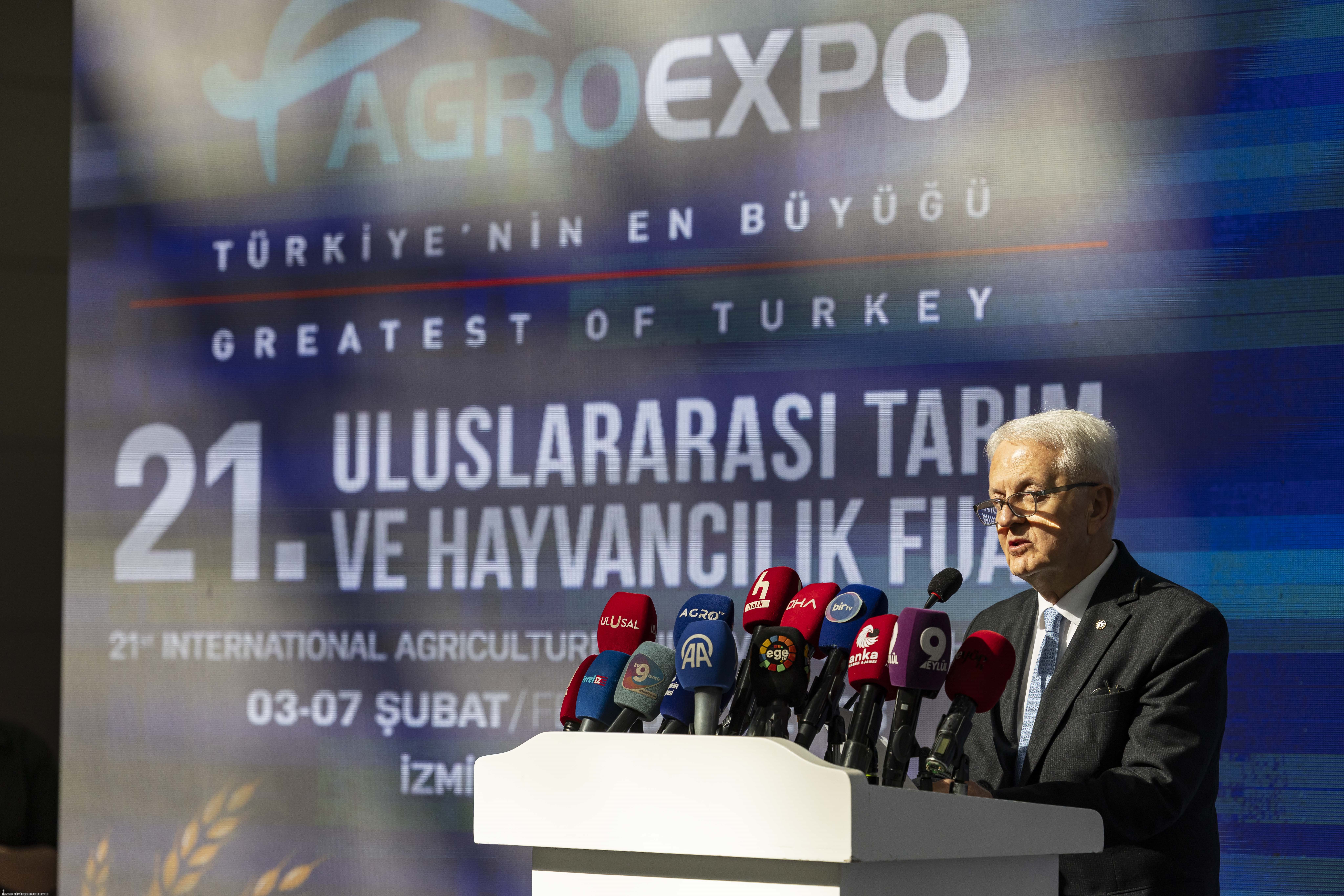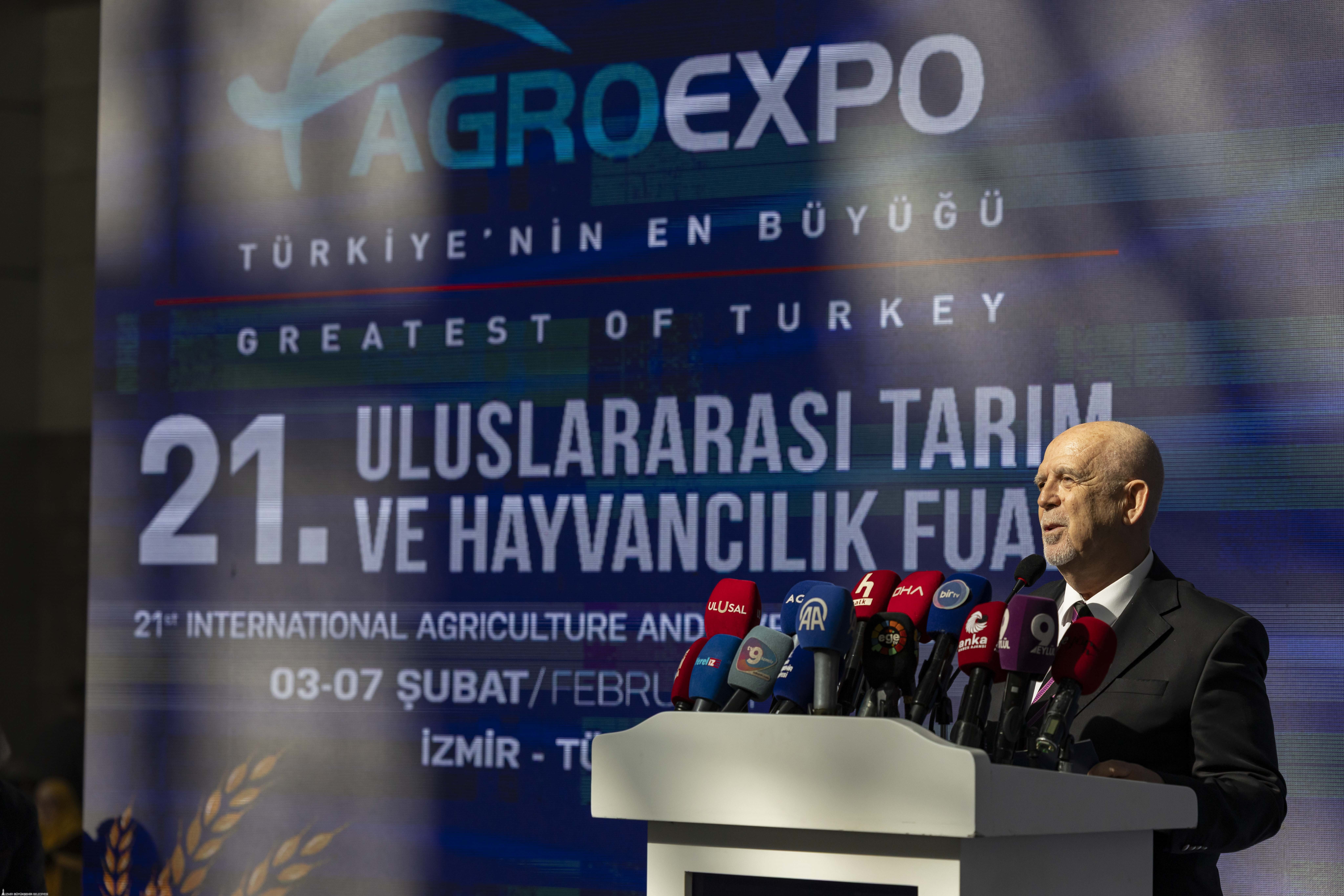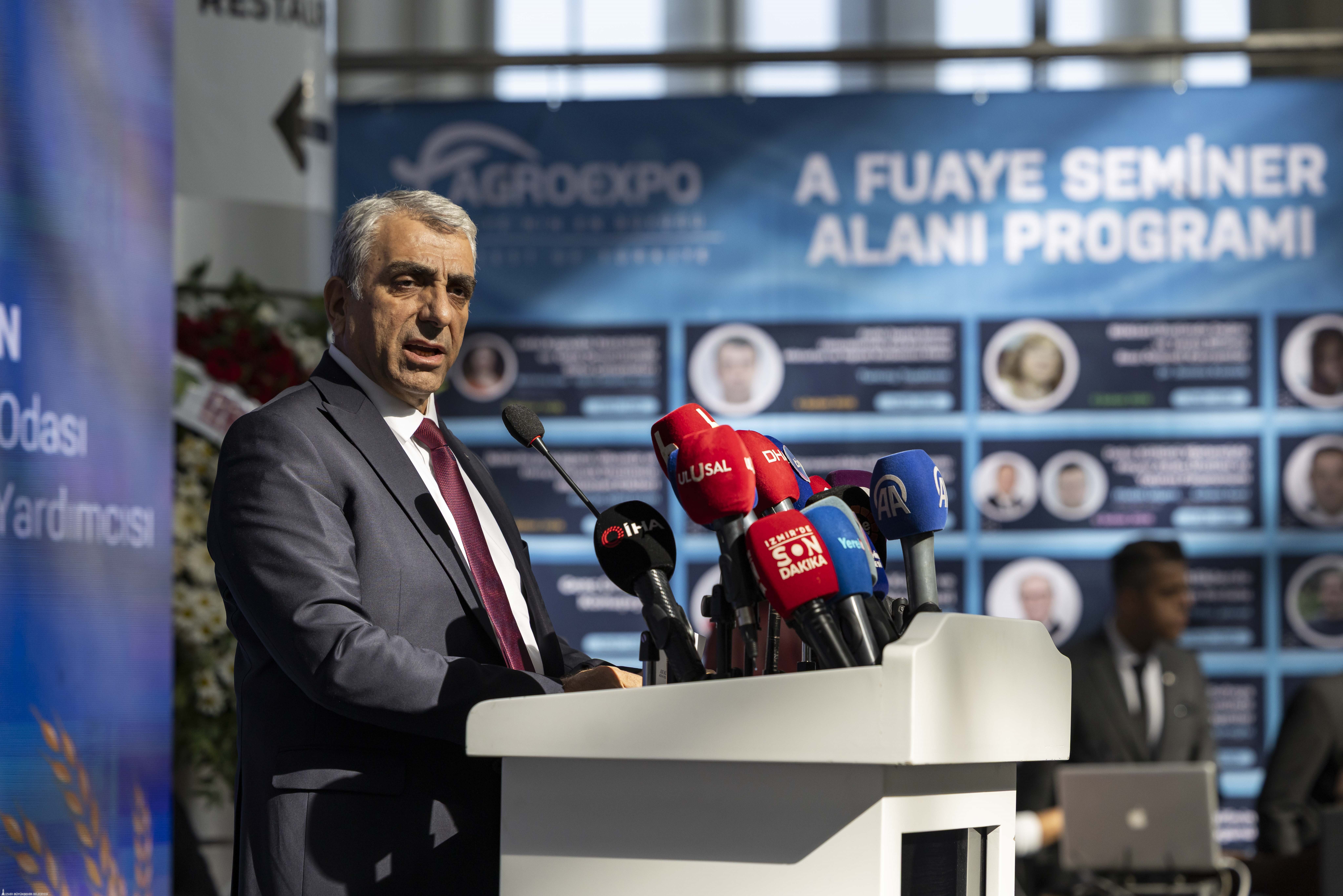 İzmir Ticaret Odası Meclis Başkanı Selami Özpoyraz, Agroexpo’nun yalnızca bir fuar değil, kararlılıkla büyütülen ve sahip çıkılan güçlü bir marka olduğunu belirterek, “Fuarımız, Türkiye’nin üretim gücünü, bilgi birikimini ve gelecek hedeflerini dünyaya anlatan çok önemli bir buluşmadır” dedi. İzmir Ticaret Borsası Meclis Başkanı Ömer Gökhan Tuncer, su kaynaklarının azaldığını ve birçok bölgede toprak kalitesinin bozulduğunu belirterek, “Dünya tarımı, daha az kaynakla daha fazla ve daha kaliteli üretim yapma zorluğuyla karşı karşıya” diye konuştu. Ege Bölgesi Sanayi Odası Yönetim Kurulu Başkan Yardımcısı Hakan Ürün, günümüzde dijitalleşme ve yapay zekânın öneminin sıkça vurgulandığını belirterek, tarım ve hayvancılığın hâlâ en stratejik sektörlerin başında geldiğini söyledi.