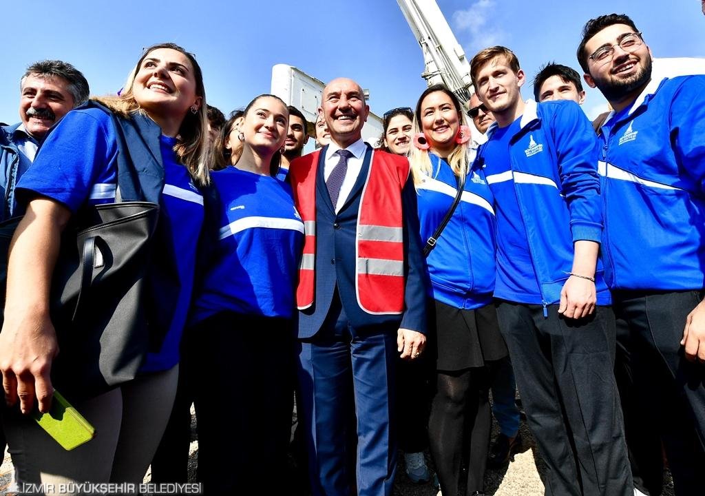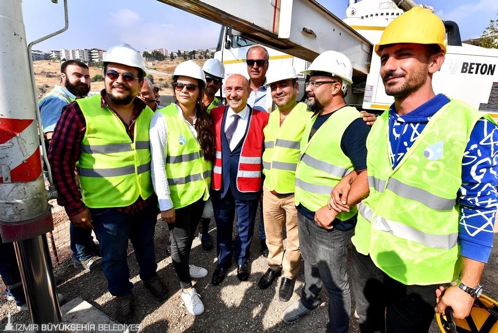 Ancak ilk kazmayı başkanımız vurdu. Çok teşekkür ediyoruz. Başkanımız Tunç Soyer'i izlemeye devam edin. Beş yıl boyunca ilçe belediye başkanlarımızla birlikte bütünlük içinde kentimize hizmet edeceğiz" dedi.