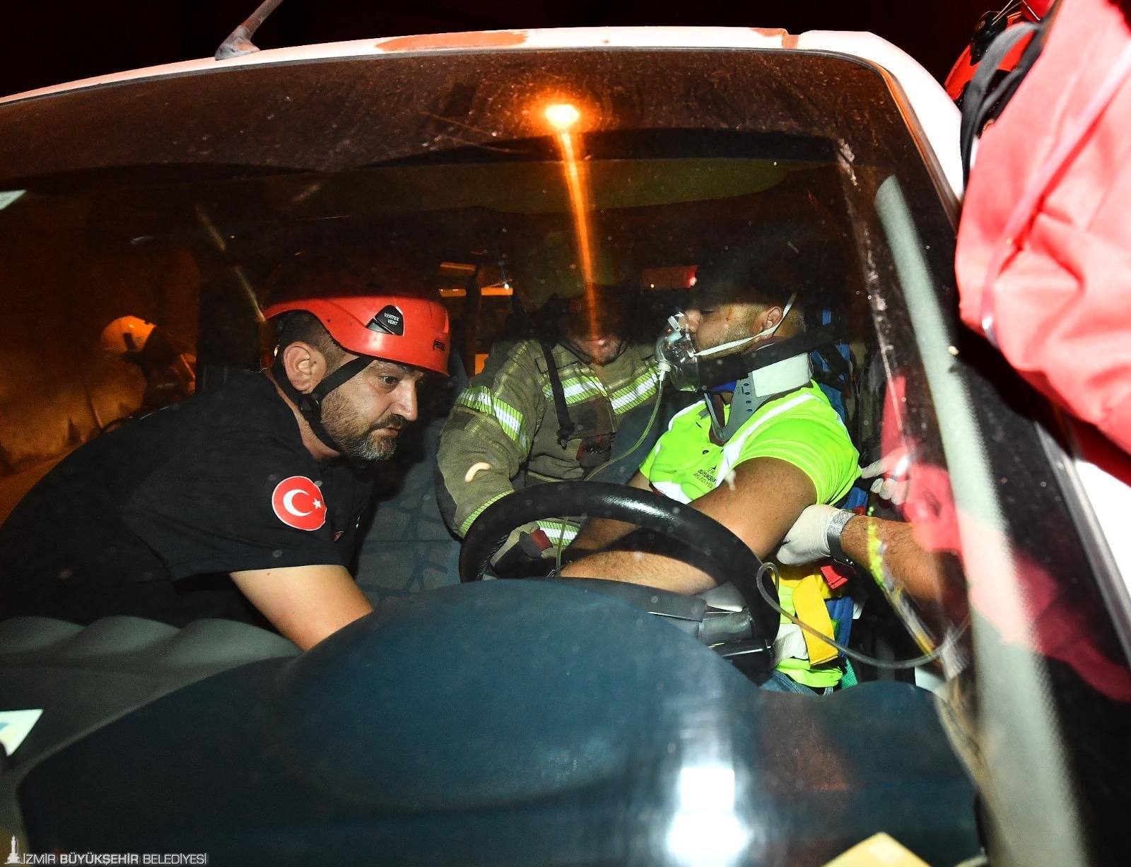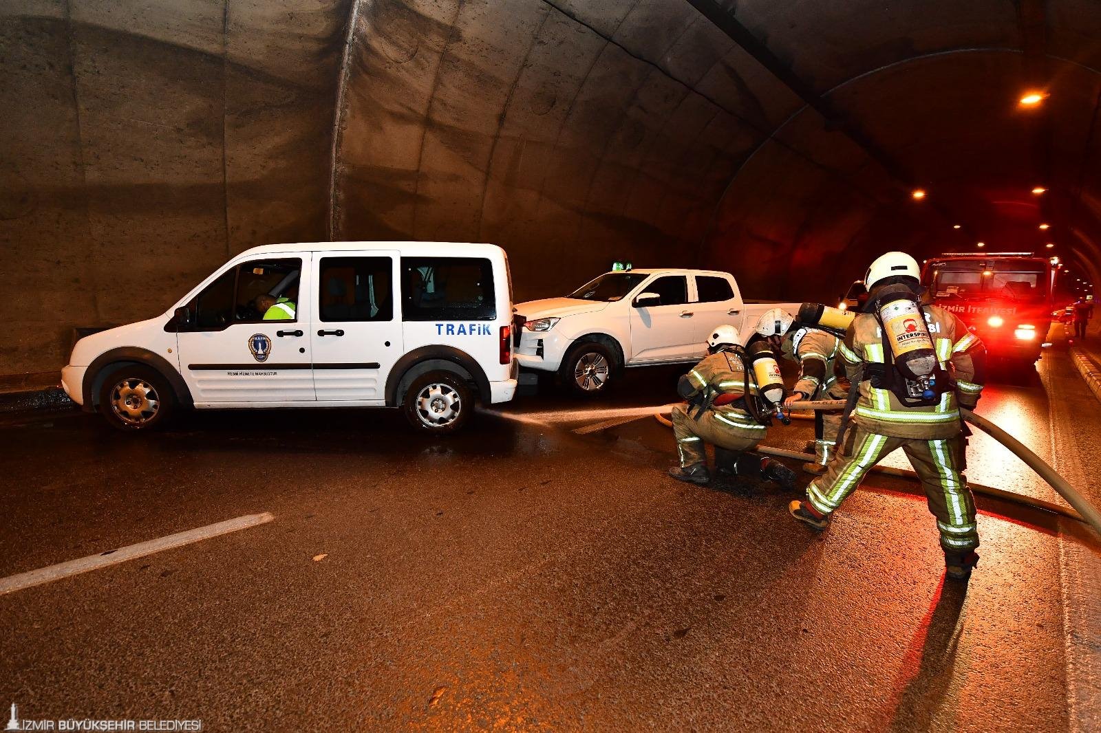 İzmir Büyükşehir Belediyesi İtfaiye Dairesi Başkanlığı, itfaiye ekiplerinin yangın, kaza, afet gibi acil durumlara karşı hızlı ve etkili şekilde müdahale etmesini sağlamak için yaptığı tatbikatlar gerçeği aratmıyor. Ekipler, Mustafa Kemal Sahil Bulvarı ile Yeşildere Caddesi’ni birbirine bağlayan bin 674 metre uzunluğundaki Konak Tüneli'nde de nefes kesen bir tatbikat düzenledi. Her iki tüpte günde yaklaşık 35 bin aracın geçtiği tünellerde senaryo gereği trafik kazası ve sonrasında yangın ihbarı yapıldı. Çağrı merkezine gelen ihbarın ardından olay yerine gitmek için hazırlanan ekipler, kısa sürede araç geçişine kapatılan tünellere vardı. Yapay dumanla oluşturulan araç yangınına müdahale eden itfaiyeciler, kazazede araç sürücülerini de kurtardı.