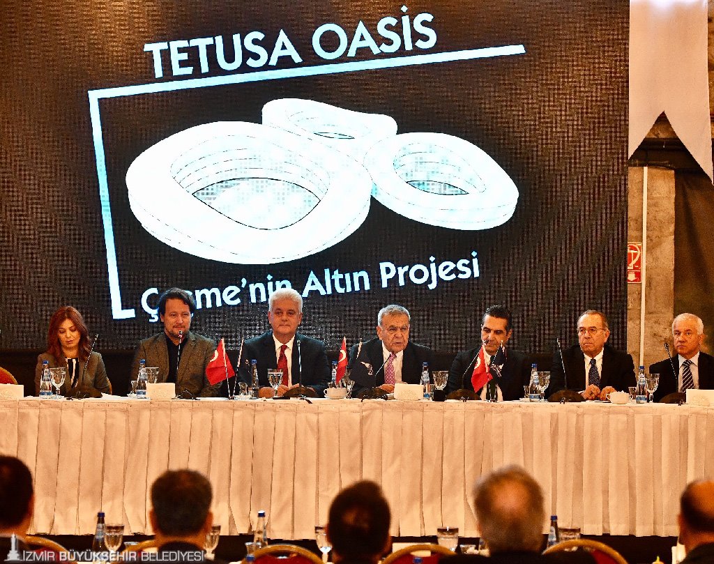 İzmir Büyükşehir Belediyesi'nin büyük ortak olduğu TETUSA (Termal Turizm Sağlık Merkezi A.Ş.) kentin önemli turizm bölgelerinden Çeşme’de yılların hayali olan "turizmi 12 aya yayma" hedefini gerçeğe dönüştürmek üzere çok önemli bir adım attı. İlçede 200 milyon TL yatırımla kurulacak uluslararası standartlardaki termal sağlık merkezi projesi TETUSA OASIS'in yaşama geçirilmesi için Slovenyalı mimarlık grubuyla imza töreni gerçekleştirildi. Tarihi Havagazı Fabrikası’ndaki imza törenine İzmir Büyükşehir Belediye Başkanı Aziz Kocaoğlu’nun yanı sıra Çeşme Belediye Başkanı Muhittin Dalgıç, TETUSA Yönetim Kurulu Başkanı Veysi Öncel, projeyi hazırlayan mimarlık ekibi ve TETUSA ortakları katıldı.