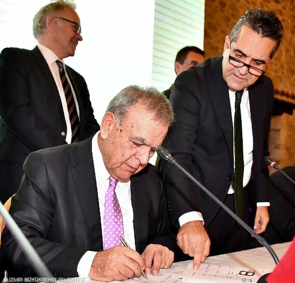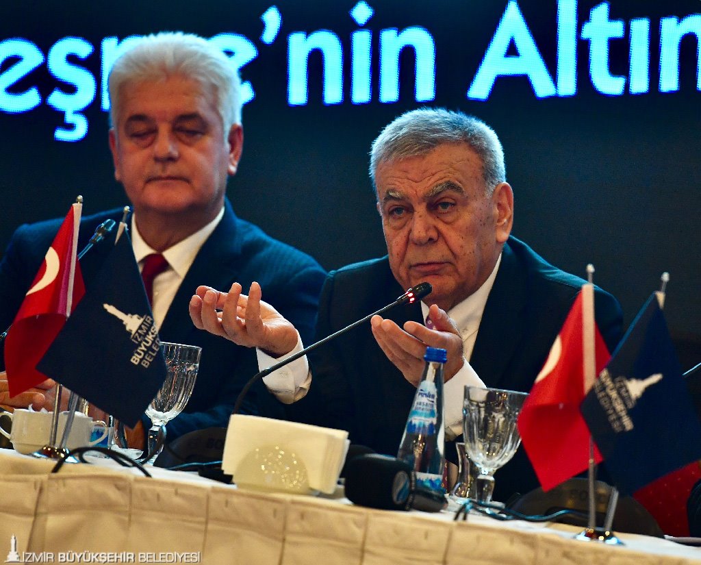 Törende konuşan İzmir Büyükşehir Belediye Başkanı Aziz Kocaoğlu, projenin hayata geçmesi için İzmir Büyükşehir Belediyesi ve Çeşme Belediyesi olarak ellerini taşın altına koyma bilinciyle ve kenti kalkındırmak üzere ortaklık kararı aldıklarını belirterek, "Biz dönemimizle birlikte, 'belediye başkanları sadece belediyenin yasal olarak verdiği görevlerden değil, kentin kalkınmasından yaşam kalitesinin yükselmesi ve kalkınmasından da sorumludur' diye Türkiye belediyecilik tarihine yeni bir ufuk getirdik. Kentin kalkınması için nerede ne lazımsa el attık. Bilim insanlarıyla birlikte İzmir Stratejik Planı'nı hazırladık. 15 senedir uyguluyoruz. Projelerin öncelik sıralamaları belli. Adım adım bunları yaptık" dedi.