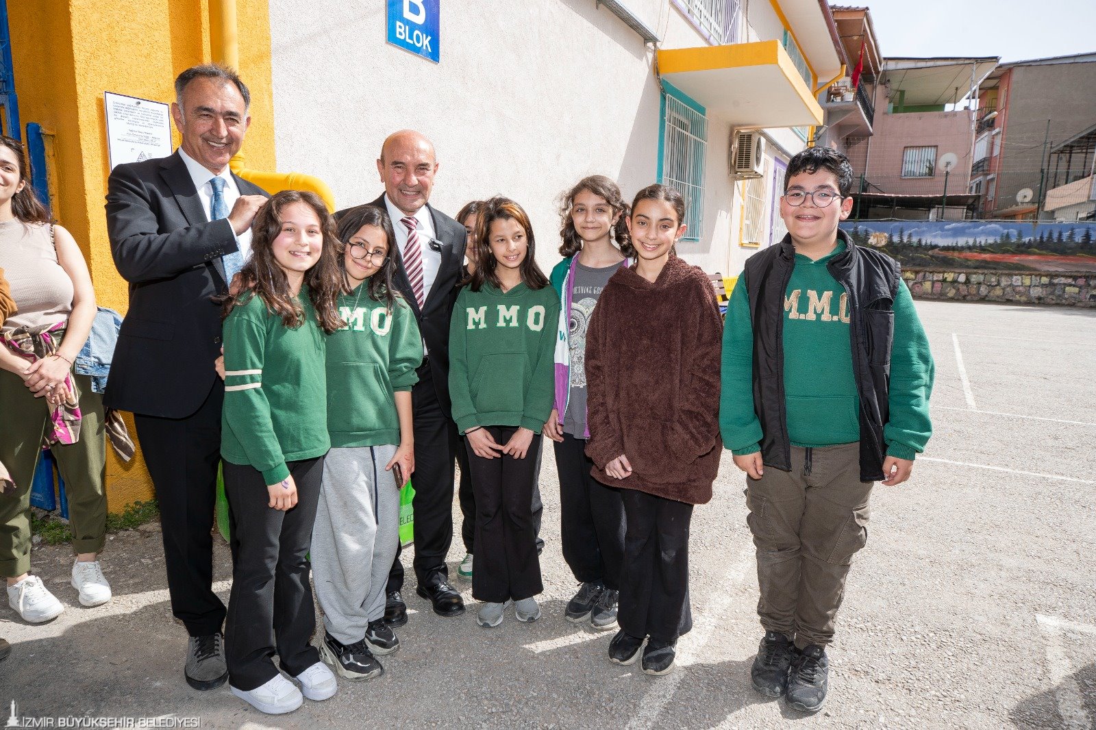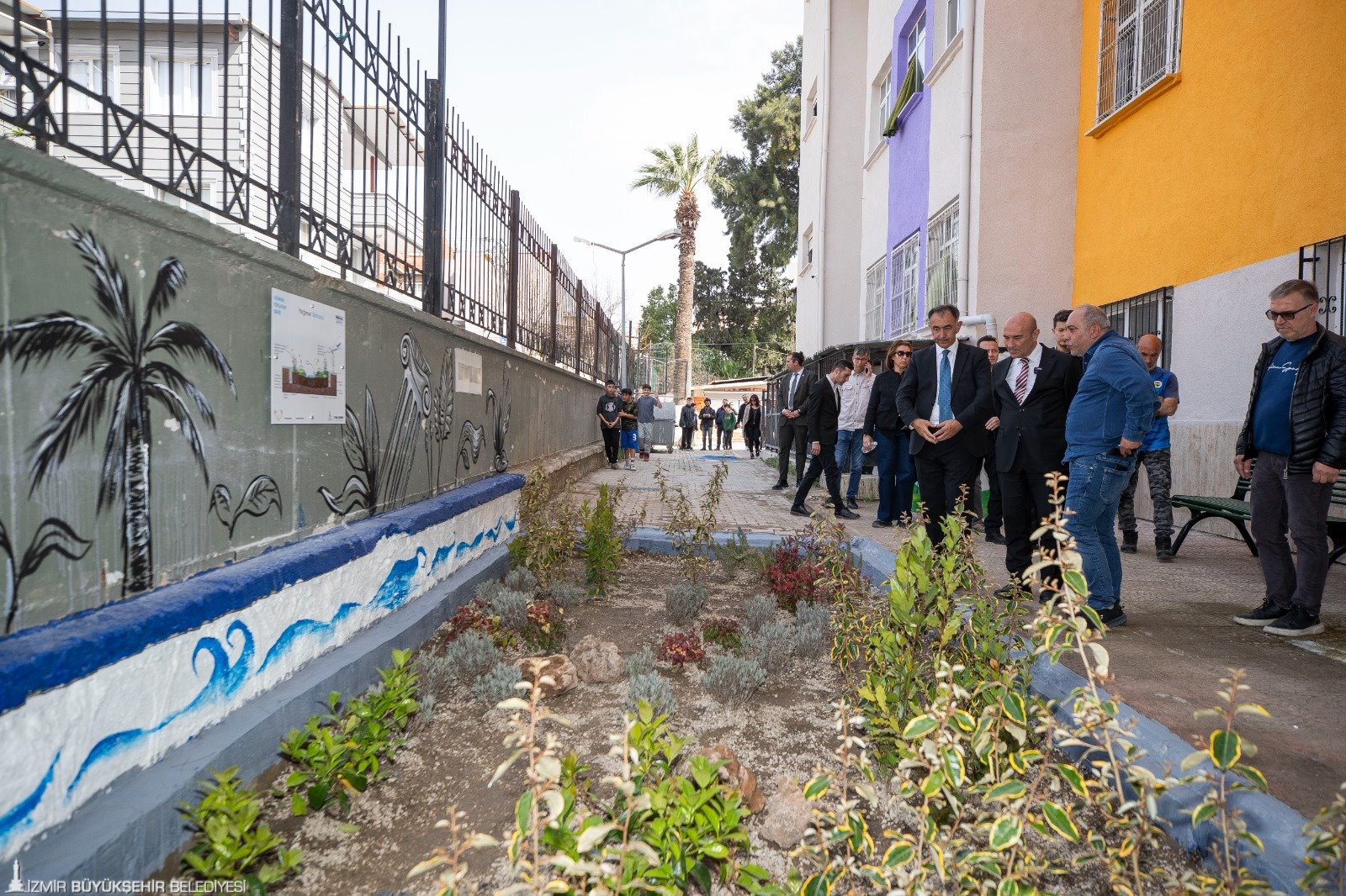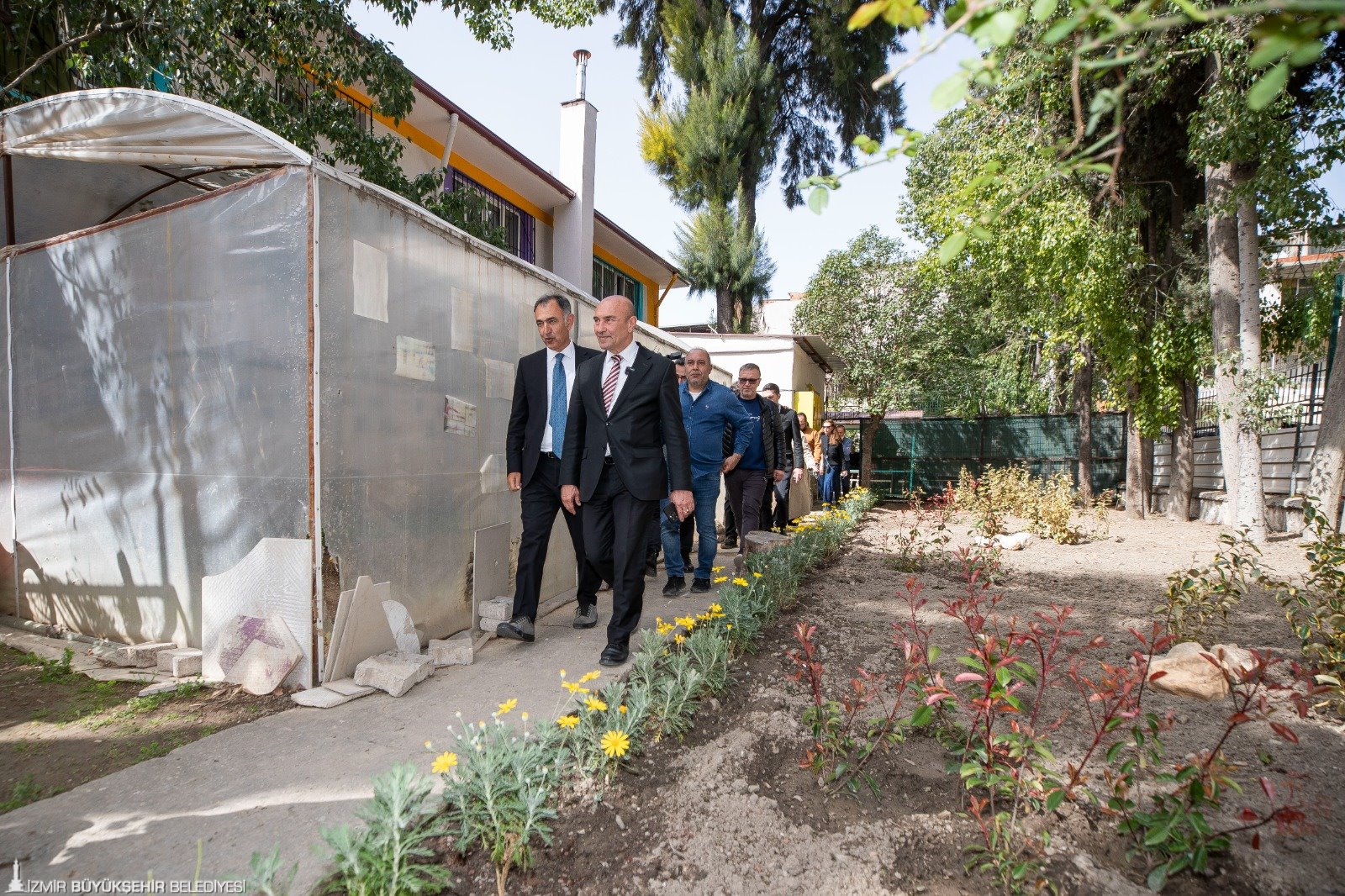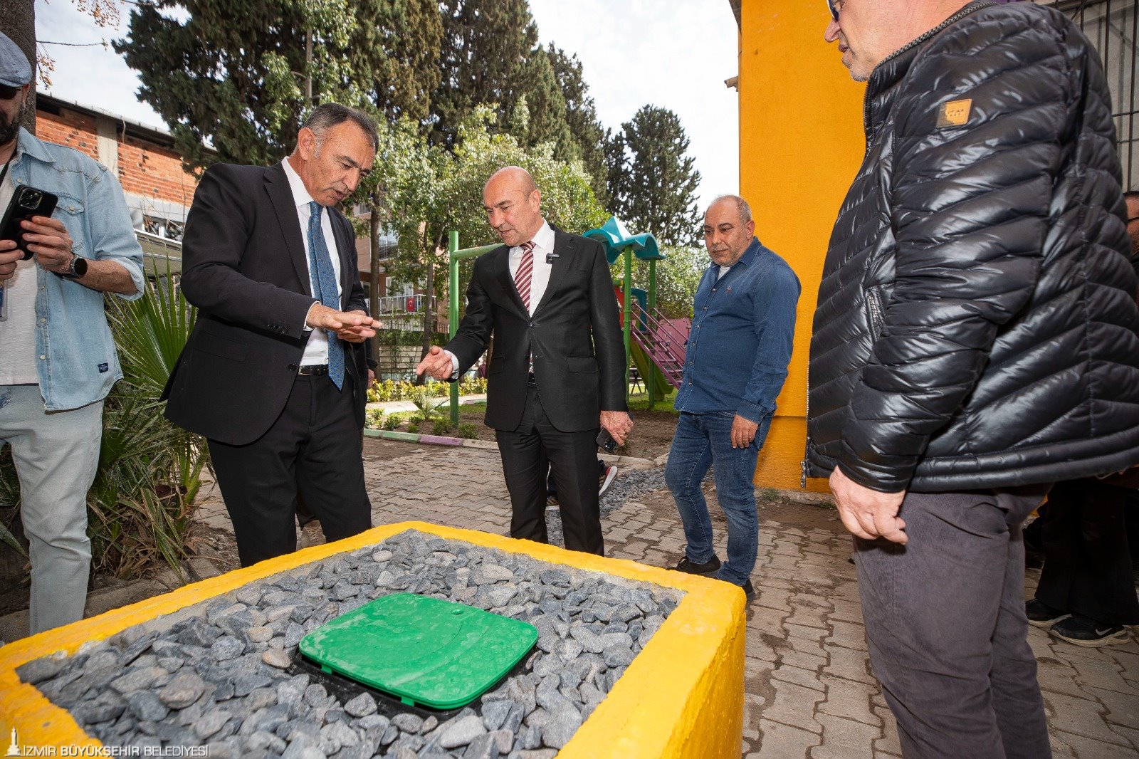 İzmir Büyükşehir Belediye Başkanı Tunç Soyer’in öncülüğünde iklim krizi ve kuraklıkla mücadele kapsamında Türkiye’de ilk olarak hayata geçirilen Sünger Kent projesi kentin dört bir yanına yayılmaya devam ediyor. Başkan Tunç Soyer Türkiye’nin su döngüsü ile yağmur suyu yönetimi yapılan ilk sünger okulu olan Bornova Çamdibi Mahallesi’ndeki Mediha Mahmut Bey Ortaokulu’nu ziyaret etti.