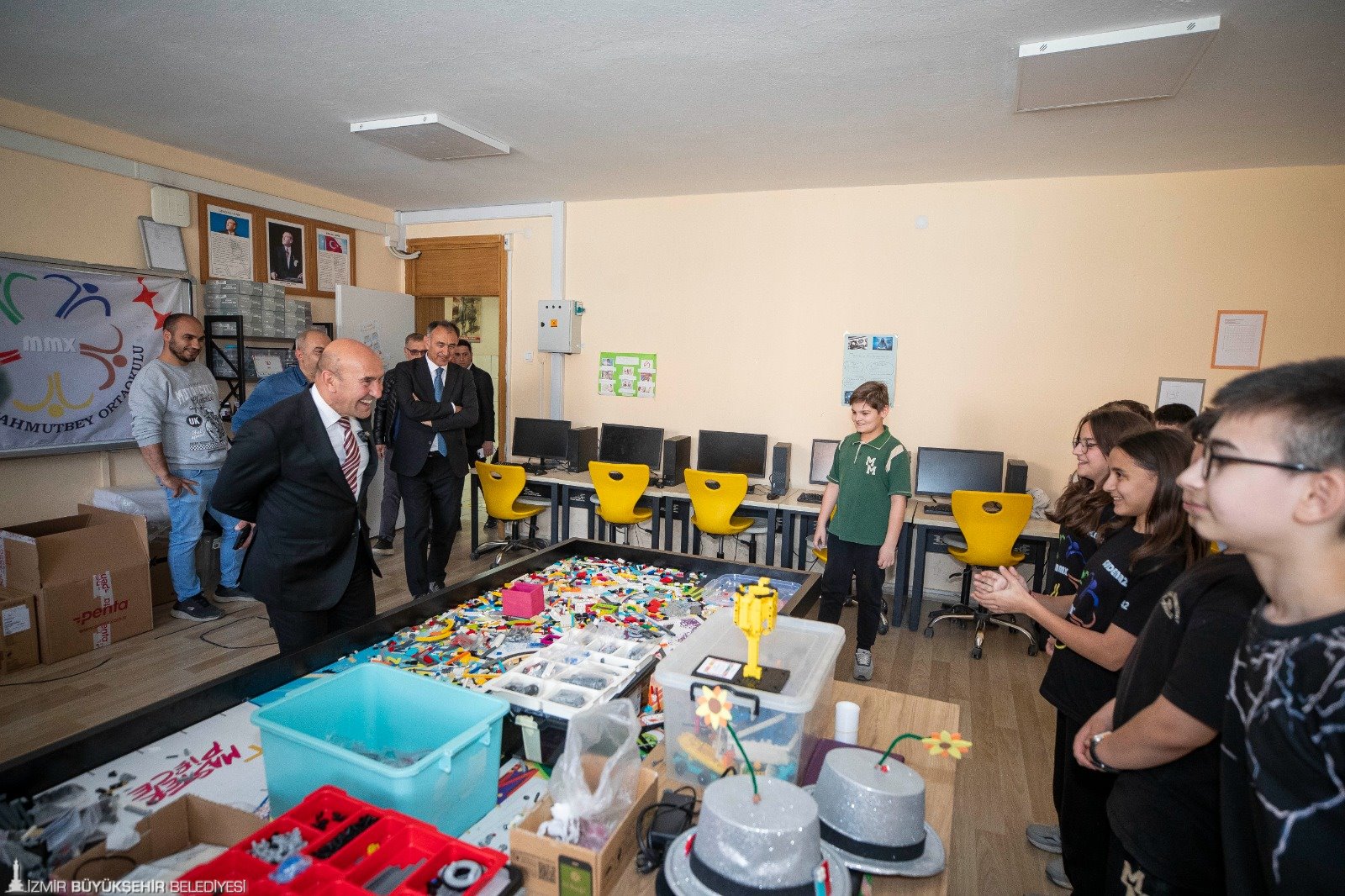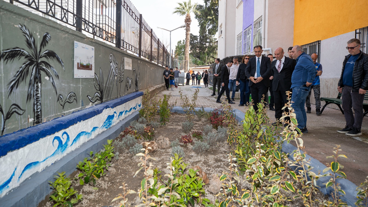 Başkan Soyer’e İzmir Büyükşehir Belediyesi Başkan Danışmanı jeoloji mühendisi Alim Murathan ve ekip temsilcileri eşlik etti. Mediha Mahmut Bey Ortaokulu Müdürü Hüseyin Yaldız okulda kurulan sistem hakkında bilgi verdi. Alim Murathan Başkan Soyer’e projenin uygulama kitabını vererek “Türkiye’de ilk defa bu pilot projeyi yaptık. Şimdi de tüm Türkiye’de rehber olacak. Beton kabukları kıracak, yeşil dönüşümü gerçekleştirecek bir rehber kitap var. Bu sizin eseriniz. Size minnettarız” dedi.