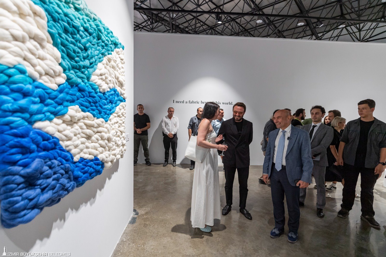 Serginin açılış töreninde konuşan Başkan Soyer, bienalin 92. İzmir Enternasyonel Fuarı kapsamında düzenlendiğini belirterek, “İzmir 8 bin 500 yıllık tarihi boyunca Akdeniz’in en önemli ticaret ve liman kentlerinden biri olmuş. Doğuda ve batıda bulunabilecek tüm ürünlerle birlikte tüm yaratıcı fikirler de İzmir Limanı'nda yüzlerce yıl harmanlanmış. Bu yüzden şehrimiz tarihi boyunca inovasyonun ve yaratıcı düşüncenin odağında yer almış. Urla Klazomenai’de bulunan Anadolu'nun en eski zeytin işliği de, Kemalpaşa’da Ulucak Höyük’te bulunan ve tarihi 8 bin yıl öncesine uzanan ilk dokuma araçları da İzmir’in bu özelliklerini yansıtıyor. Hareketli ticaret hayatı ve çok renkli, çok kültürlü yapısıyla sanat üretiminde de İzmir, Akdeniz'in en özgün şehirlerinden biri olmuş. Bugün tekstil sektörünün İzmir için anlamını hepimiz çok iyi biliyoruz. Bu sebeple Fashion Prime, Fashion Tech ve IF Wedding Fuarlarıyla İzmir ve Türkiye tekstil sektörünü dünyayla buluşturmayı sürdürüyoruz. İzmir’in tarihinden ve tekstille olan ilişkisinden aldığımız ilhamla, Türkiye’de bir ilk olacak Uluslararası Tekstil Bienali’ni açılışını gerçekleştiriyoruz. Kıymetli sanatçılarımıza çok teşekkür ediyorum. Nihat Bey de 10 yılı aşkın dostluğumuzda ülkemiz ve şehrimiz adına inanılmaz gururlar yaşattı bize. Bir kez daha Nihat beye teşekkür ediyorum” dedi.