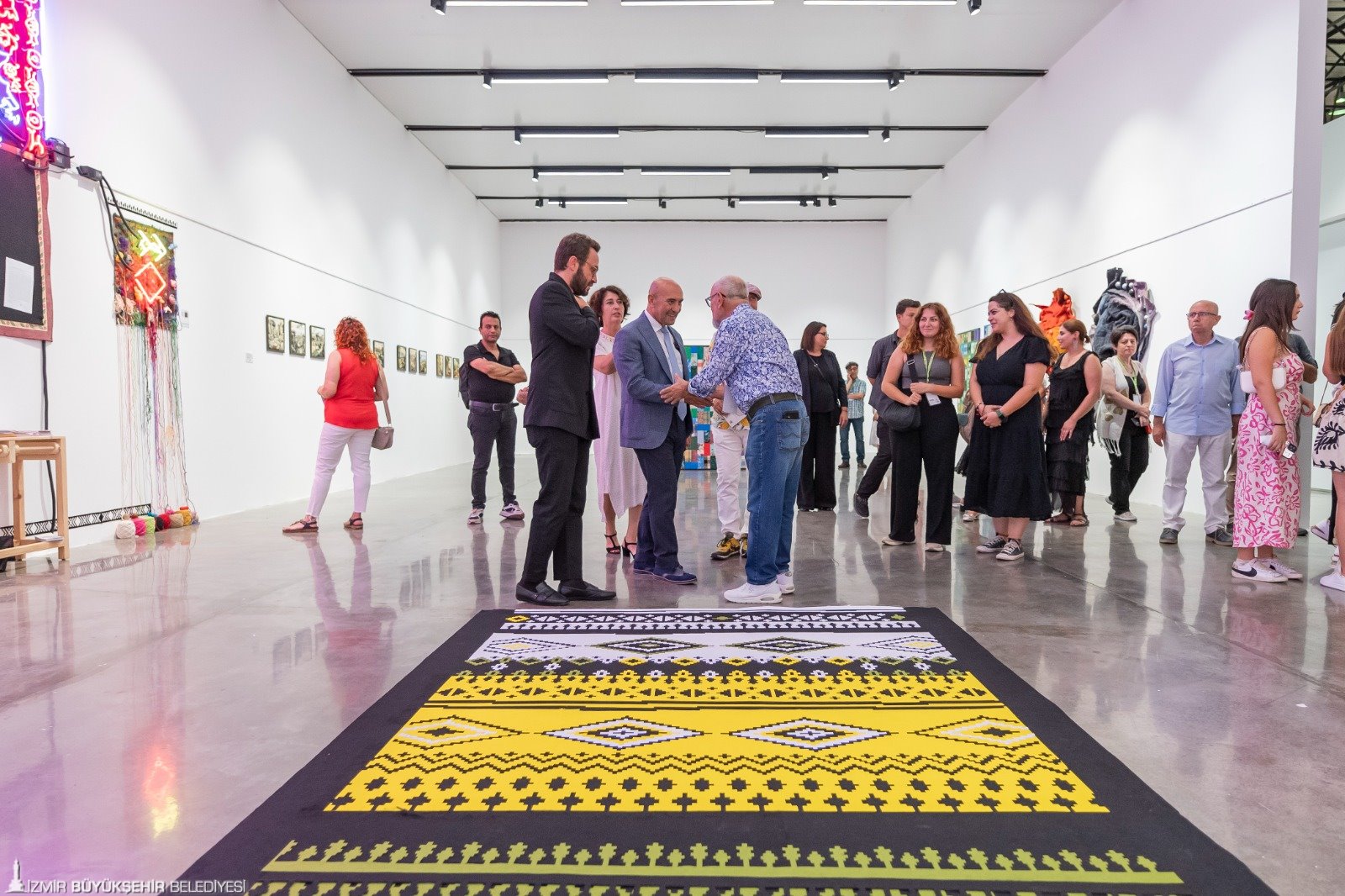 İzmir Büyükşehir Belediye Başkanı Tunç Soyer, Türkiye ve dünya sanat tarihine adını yazdıracak Uluslararası Tekstil Bianeli’nin açılışını yaptı. Küratörlüğünü sanatçı Nihat Özdal’ın yaptığı Uluslararası Tekstil Bienali’nin açılış törenine İzmir Büyükşehir Belediye Başkanı Tunç Soyer’in eşi Neptün Soyer, Büyükşehir Belediyesi bürokratları, sanatçılar ve sanatseverler katıldı. Başkan Tunç Soyer eşi Neptün Soyer ile birlikte sergilenen eserleri tek tek inceleyerek sanatçılardan bilgi aldı. 24 Kasım’a kadar açık olacak sergilerde, 17 farklı ülkeden 57 katılımcı yer aldı. Eserler Kültürpark’taki Atlas Pavyonu ve Pakistan Pavyonu’nun yanı sıra Kemeraltı’nda Agora Antik Kenti, Etz Haim Sinagogu ve Alga Çikolata Fabrikası’nda da sanatseverlerle buluşacak.