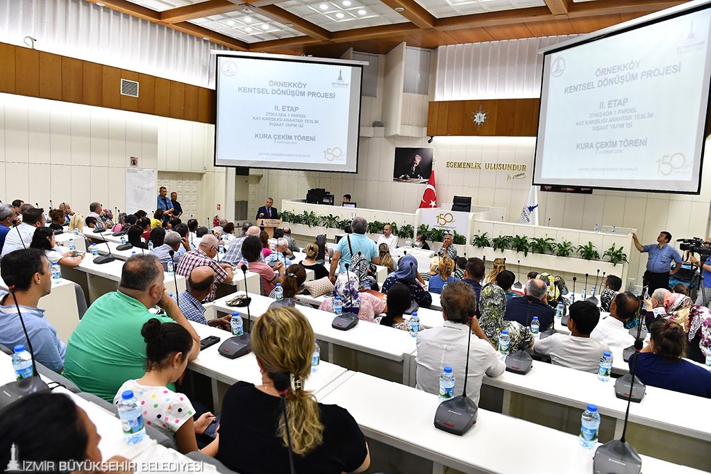 Batısında Örnekköy Deresi, kuzeyinde 7442 Sokak, doğusunda Baş Pehlivan Karaali Caddesi ve güneyinde 7505 ve 7414 sokaklar ile sınırlanan kentsel dönüşüm alanının 150 konutluk 2.etabı için İzmir Büyükşehir Belediyesi Meclis Salonu’nda “noter huzurunda” kura çekimini gerçekleştirdi. Kura çekimine İzmir Büyükşehir Belediye Başkanı Aziz Kocaoğlu ve Karşıyaka Belediye Başkanı Hüseyin Mutlu Akpınar birlikte katıldı.
