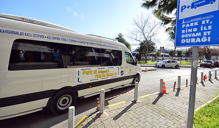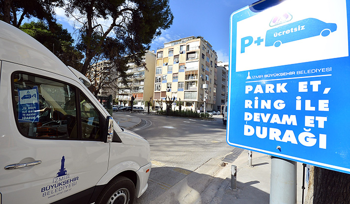 Yol kenarlarına park etmiş özel araçları otoparklara çekmeyi amaçlayan ring sistemi kapsamında hizmete başlayan ring araçları, Kahramanlar Kapalı Otoparkı'ndan hareket ederek sırasıyla, Kültürpark 26 Ağustos Kapısı karşısı, Lozan Meydanı, Gazi İlköğretim Okulu (Plevne Bulvarı ile Talatpaşa Bulvarı kesişimi), Alsancak Tam Otomatik Otoparkı (Ali Çetinkaya Bulvarı üzeri) ve Alsancak Spor Salonu duraklarına uğruyor. Ring seferi başlangıç noktası olan Kahramanlar Katlı Otoparkı'nda tamamlanıyor.