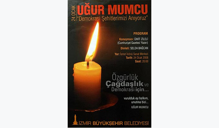 İzmir Büyükşehir Belediyesi, 24 Ocak 1993'te Ankara’da evinin önünde katledilen gazeteci Uğur Mumcu’yu düzenlediği etkinlikle anıyor. 24 Ocak Perşembe günü İsmet İnönü Kültür Merkezi’nde düzenlenecek törene Cumhuriyet Gazetesi yazarı Ümit Zileli ve Selda Bağcan katılacak. Saat 20.00’de başlayacak olan etkinlikte Ümit Zileli, İzmirliler ile duygu ve düşüncelerini paylaşacak. Etkinliğin “Uğur Mumcu’yu ve demokrasi şehitlerimizi türkülerle selamlıyoruz” bölümünde ise sanatçı Selda Bağcan bir dinleti sunacak.