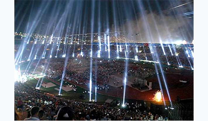 Işık gösterisi eşliğinde yapılan sunumun ardından muhteşem bir havai fişek gösterisi yapıldı. Atatürk Stadı ve çevresinde gökyüzünde adeta bir renk cümbüşü yaşanırken, gösteri, İzmir’in çeşitli bölgelerinden de izlendi.