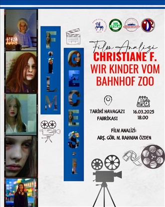 İzmir Büyükşehir Belediyesi Gençlik ve Spor Hizmetleri Dairesi Başkanlığı’na bağlı çalışan Genç İzmir birimi ile Dokuz Eylül Üniversitesi’nin aktif öğrenci topluluklarından Kariyer Topluluğu, Yeşilay Topluluğu ve PDR Topluluğu’nun iş birliğiyle Tarihi Havagazı Fabrikası’nda düzenlenen etkinlikte gençler, Alman yazar Vera Christiane Felscherinow’un otobiyografi kitabı Wir Kinder vom Bahnhof Zoo’dan sinemaya uyarlanan “Christiane F.” adlı kült filmi birlikte izledi.