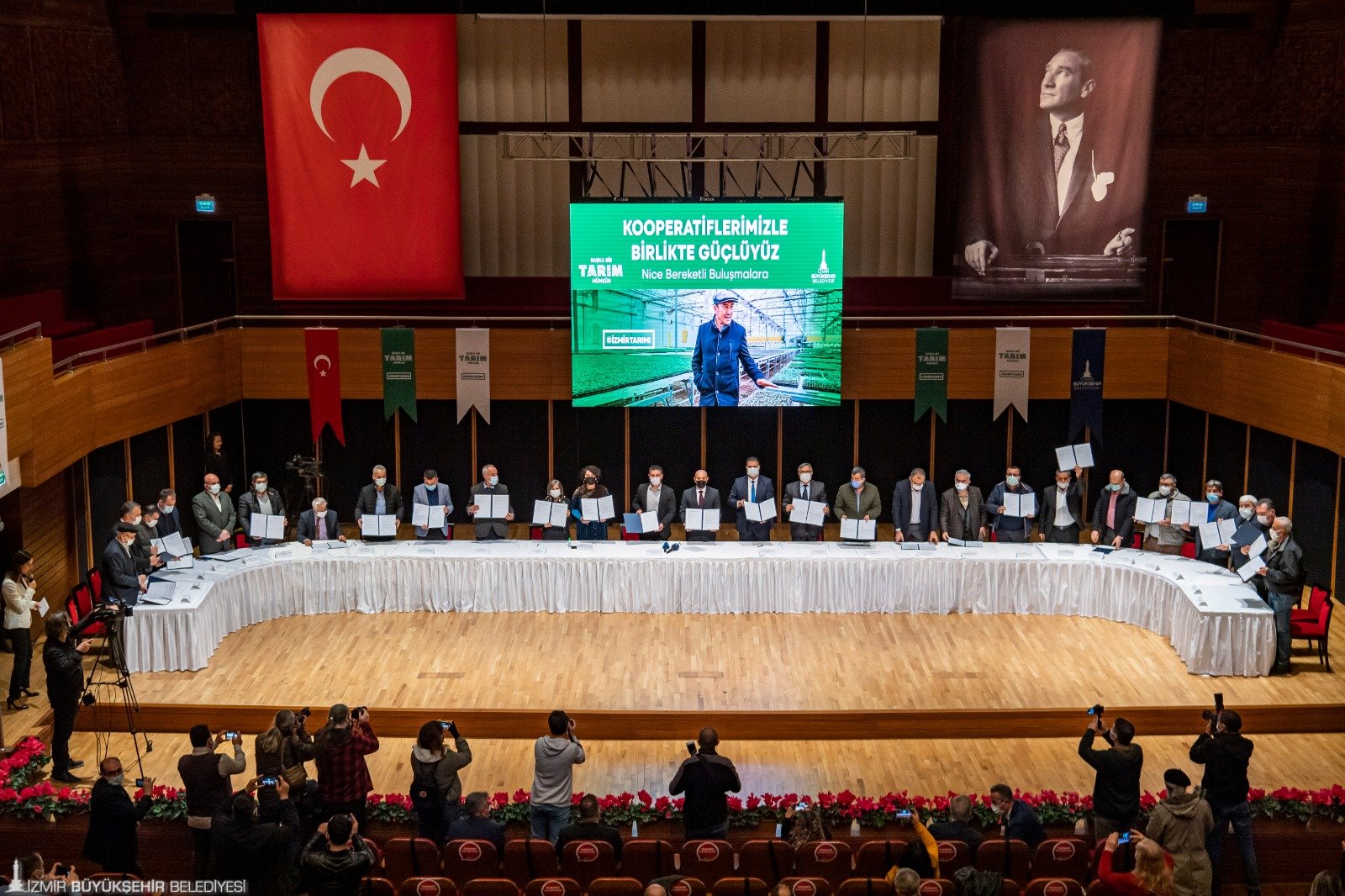 İzmir Büyükşehir Belediye Başkanı Tunç Soyer’in “Başka Bir Tarım Mümkün” vizyonu doğrultusunda oluşturduğu, kuraklık ve yoksullukla mücadele üzerine temellenen İzmir Tarımı stratejisi kapsamında 2021’de önemli adımlar atıldı. Tarım alanındaki yol haritasını “yerli tohuma ve yerli hayvan ırklarına sahip çıkmak, ürünleri işleyerek katma değerini yükseltmek, üreticiyi kooperatifler bünyesinde faaliyet göstermeye teşvik etmek ve ürünü ulusal ve uluslararası piyasada pazarlamak” şeklinde dört temel ilkeye dayandıran Büyükşehir Belediyesi, bu yıl üretici kooperatiflerinden 164 milyon lirayı aşan alım yaptı.