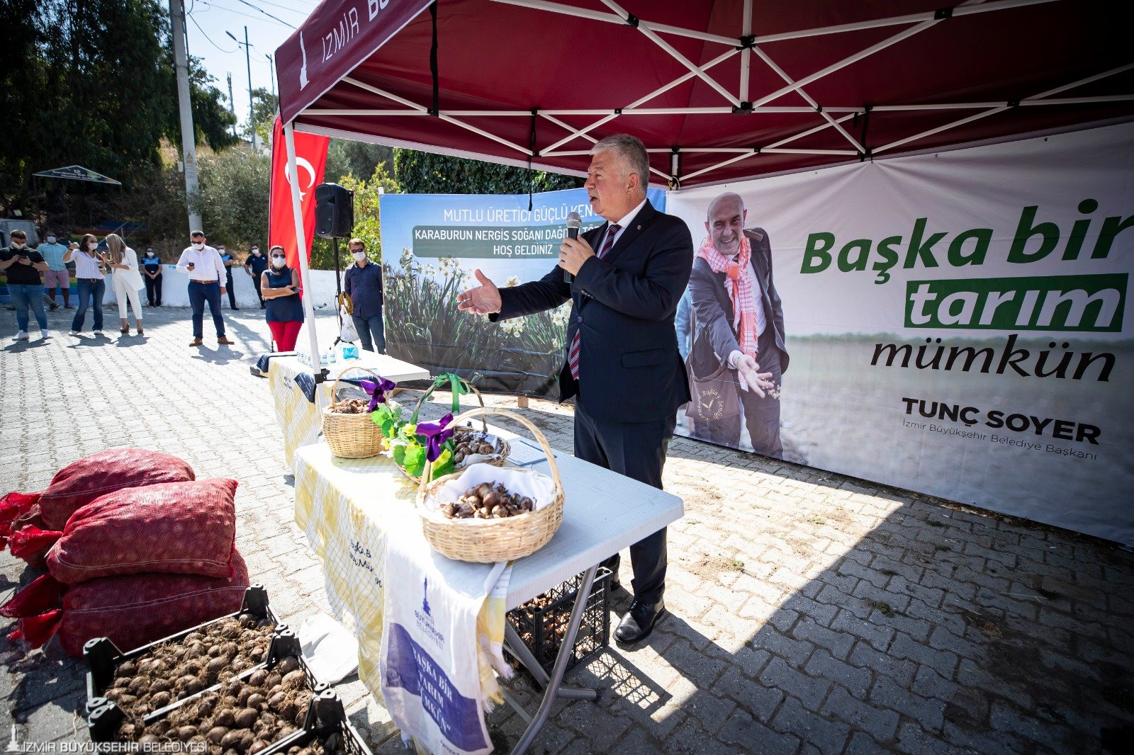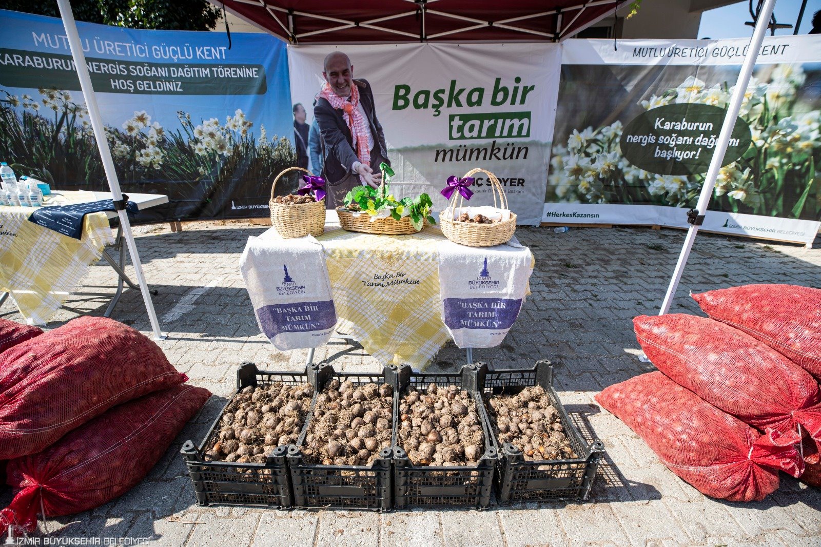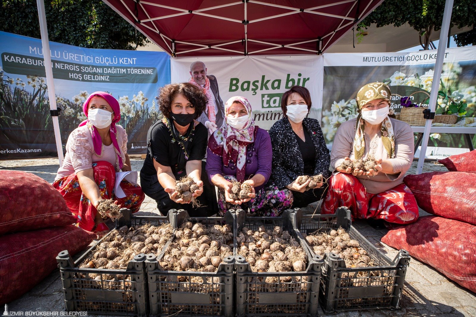 Karaburun Belediye Başkanı İlkay Girgin Erdoğan, ‘Başka bir tarım mümkün’ diyerek yola çıkan İzmir Büyükşehir Belediye Başkanı Tunç Soyer’in bu sözünün arkasında durduğunu belirterek, “Bugün nergis soğanı almayan üreticilerimize dağıtım yapılıyor. Büyükşehir’in desteği ile inşallah yıllar önceki nergis üretimindeki performansımıza kavuşuruz. Büyükşehir’i yanımızda görmek çok güzel” diye konuştu.