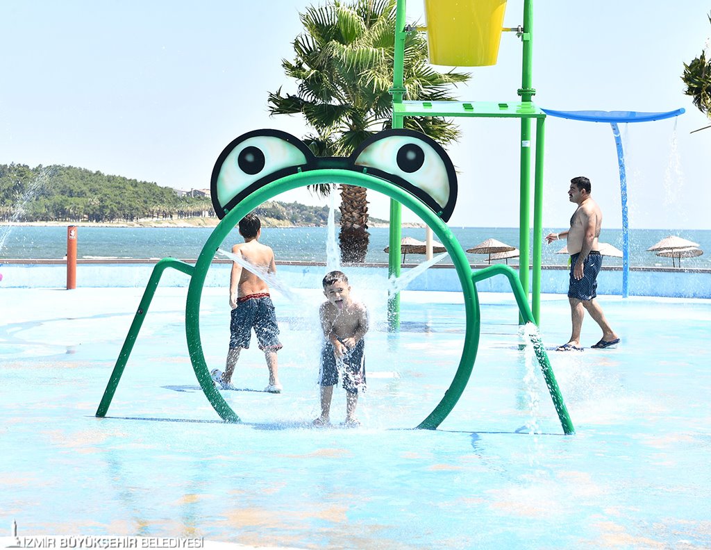 İzmir Körfezi'ndeki ilk mavi bayraklı plaj olan 1 kilometrelik Kum Denizi Plajı, su oyunları parkı, çocuk oyun alanları, yürüyüş ve bisiklet yolları, kafeteryaları, yeşil alanları ve engellilere ilişkin düzenlemeleri ile kentlilerin ve tatilcilerin dikkatini çekiyor.