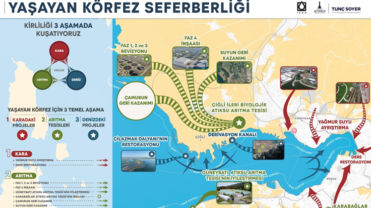 İZSU Genel Müdürlüğü, Körfez’in varlığının devamı ve sürdürülebilirliği için çok sayıda yenilikçi projeye imza atmaya devam ediyor. İzmir Körfezi’nin temizlenmesi için bugüne kadar ilk kez uygulanan kapsamlı bir strateji benimseyen İZSU uygulamaya koyduğu bu stratejiyi “Yaşayan Körfez” programı olarak adlandırıyor. Konuya ilişkin çalışmaların sonuç vermeye başladığını ifade eden İzmir Büyükşehir Belediye Başkanı Tunç Soyer, “Gelecek kuşakların sağlığı, konforu için temiz bir Körfez yaratabilirsek, kentin cazibesini daha da artıracağız. Koku sorunu tarihe karışacak. Körfez yüzülebilir hale gelecek. Kararlıyız, Körfez’in tamamını yaşayan ve yüzülebilir hale getireceğiz” dedi.