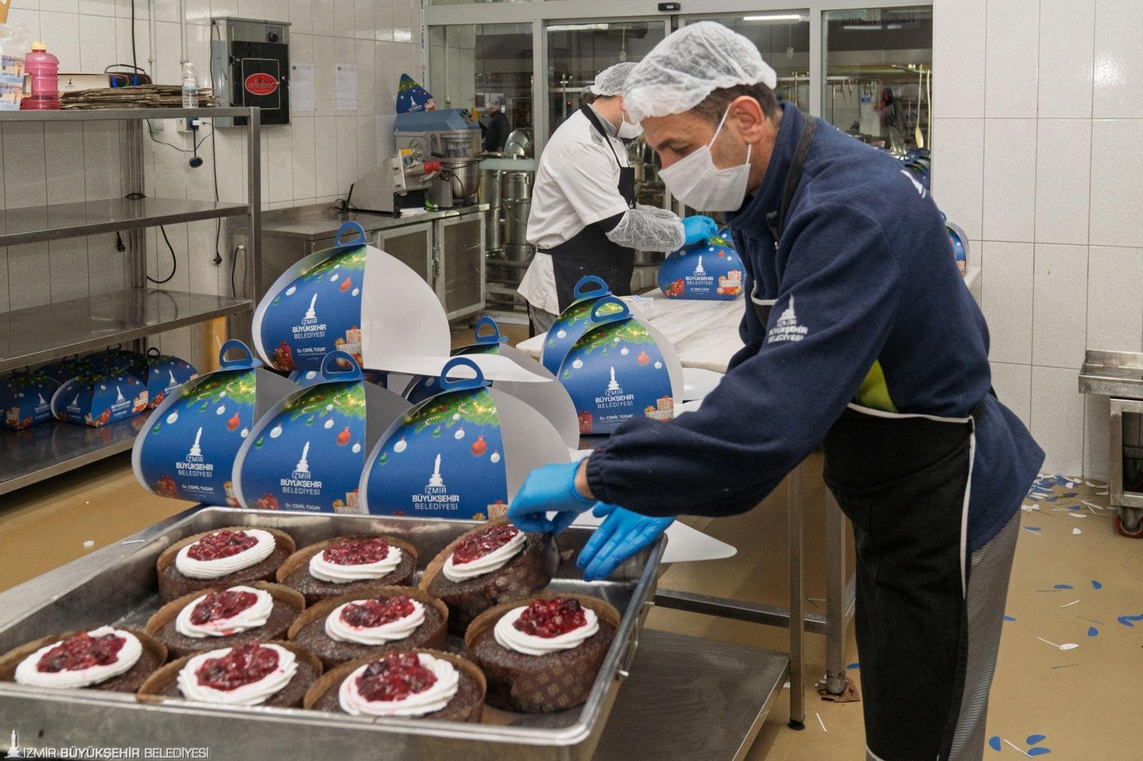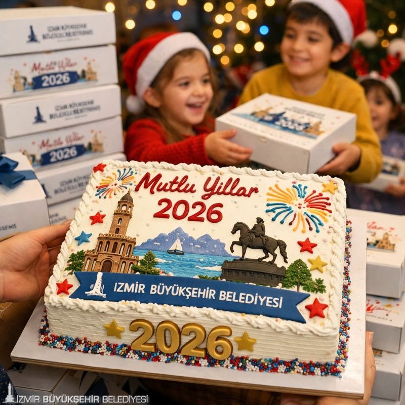 İzmir Büyükşehir Belediyesi, 2026 yılına girerken çocukları mutlu etmek için yine yeni yıl pastası sürprizi yaptı. Büyükşehir Belediyesi’nin Sosyal Yardım Takip Sistemi’nde kayıtlı haneler için İzmir Büyükşehir Belediyesi Sosyal Yaşam Kampüsü içinde hizmet veren Aşevi’nde 3 bin 20 pasta yapıldı. Dağıtıma başlanan pastaların kutuları içinde İzmir Büyükşehir Belediye Başkanı Dr. Cemil Tugay’ın yeni yıl mesajı da yer aldı.