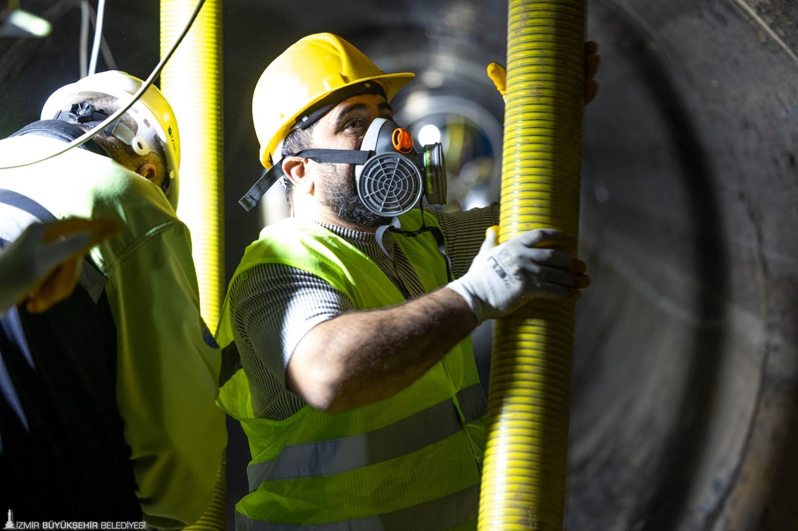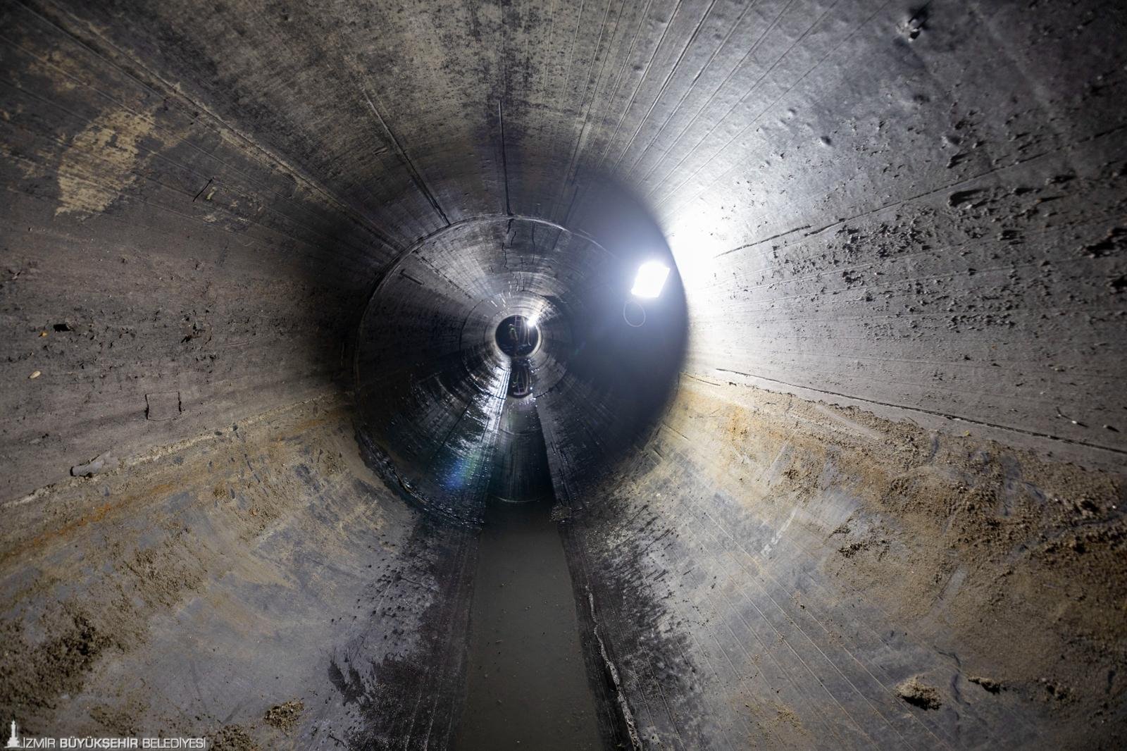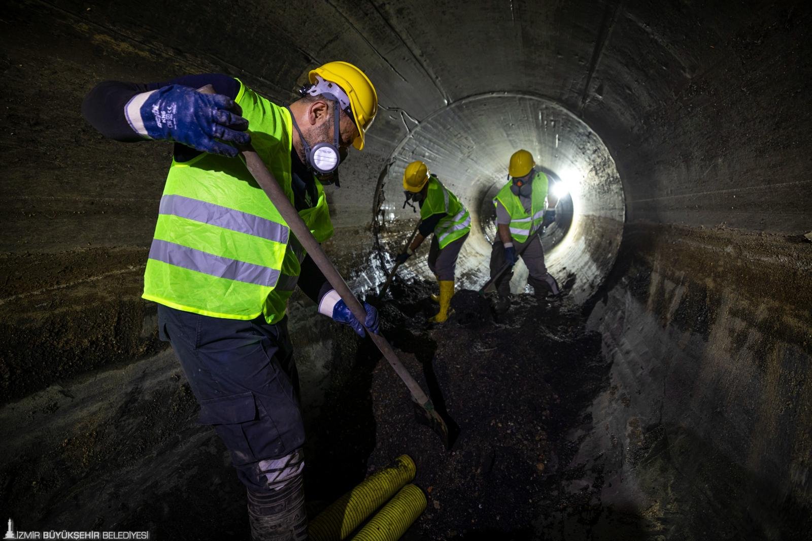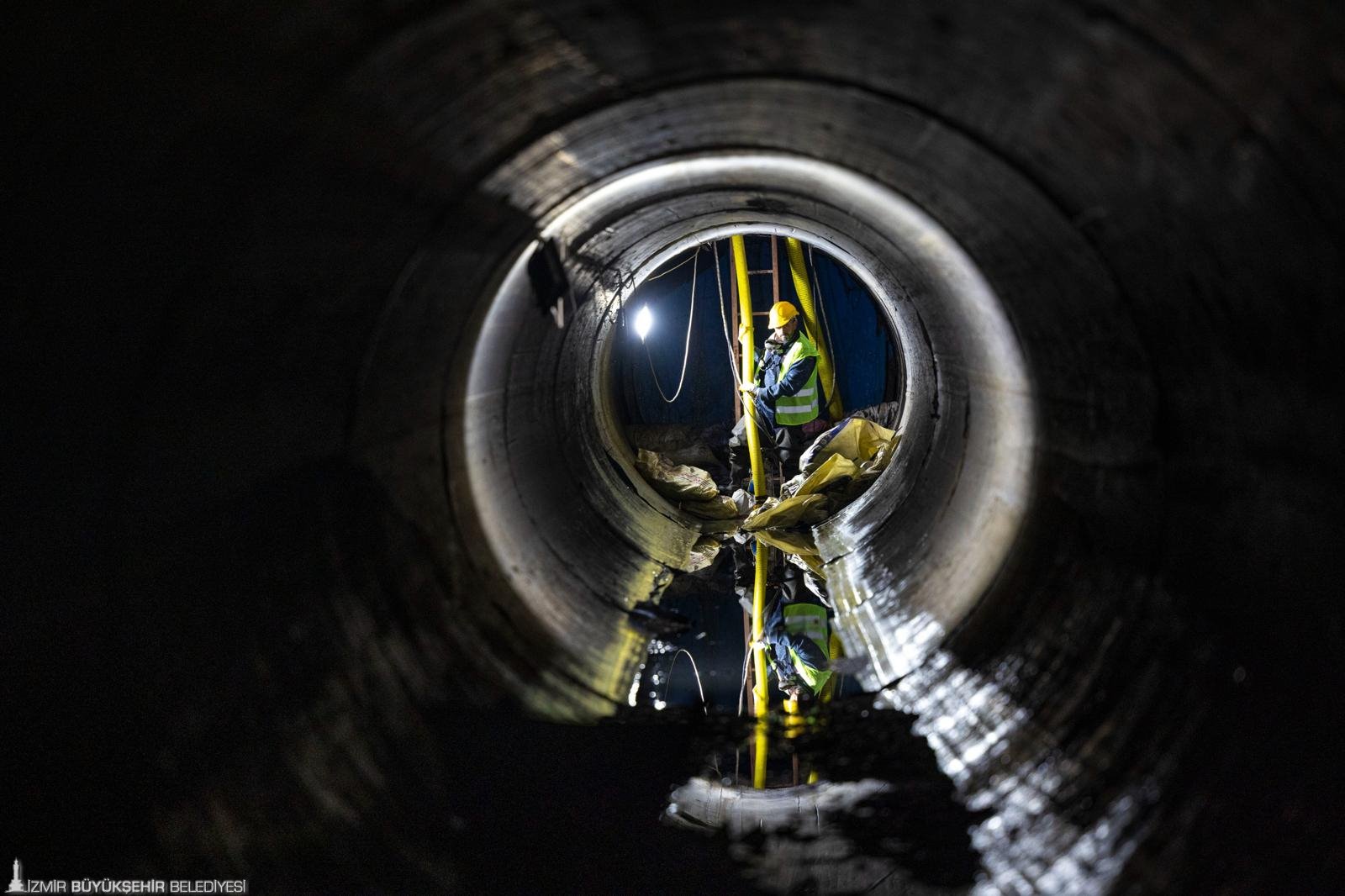 Kent yaşamının görünmeyen ancak hayati öneme sahip altyapı sistemlerinde “tolerasyon sıfır” anlayışıyla çalışmalarını sürdüren İzmir Büyükşehir Belediyesi İZSU Genel Müdürlüğü, yerin altında da mesaisine devam ediyor. Bu kapsamda, İzmir’in atık suyunu toplayarak Çiğli Atıksu Arıtma Tesisi’ne ulaştıran, Büyük Kanal olarak bilinen 65 kilometrelik ana kolektör hattında kapsamlı temizlik çalışmaları yürütülüyor. İZSU Kanalizasyon Dairesi Başkanlığı koordinasyonunda gerçekleştirilen çalışmalarda, çift hatta yer alan 2 bin 200 milimetre çapındaki borular içinde biriken atıklar temizlenerek olası tıkanıklıkların önüne geçiliyor. Çalışmalar sayesinde koku oluşumu engellenirken, kanallarda biriken atıkların İzmir Körfezi’ne ulaşması da önleniyor. Basmane Meydanı ile Smyrna Meydanı arasındaki 13 kilometrelik kolektör hattını kapsayan temizlik çalışmalarının maliyetinin 350 milyon lira olduğu bildirildi.
