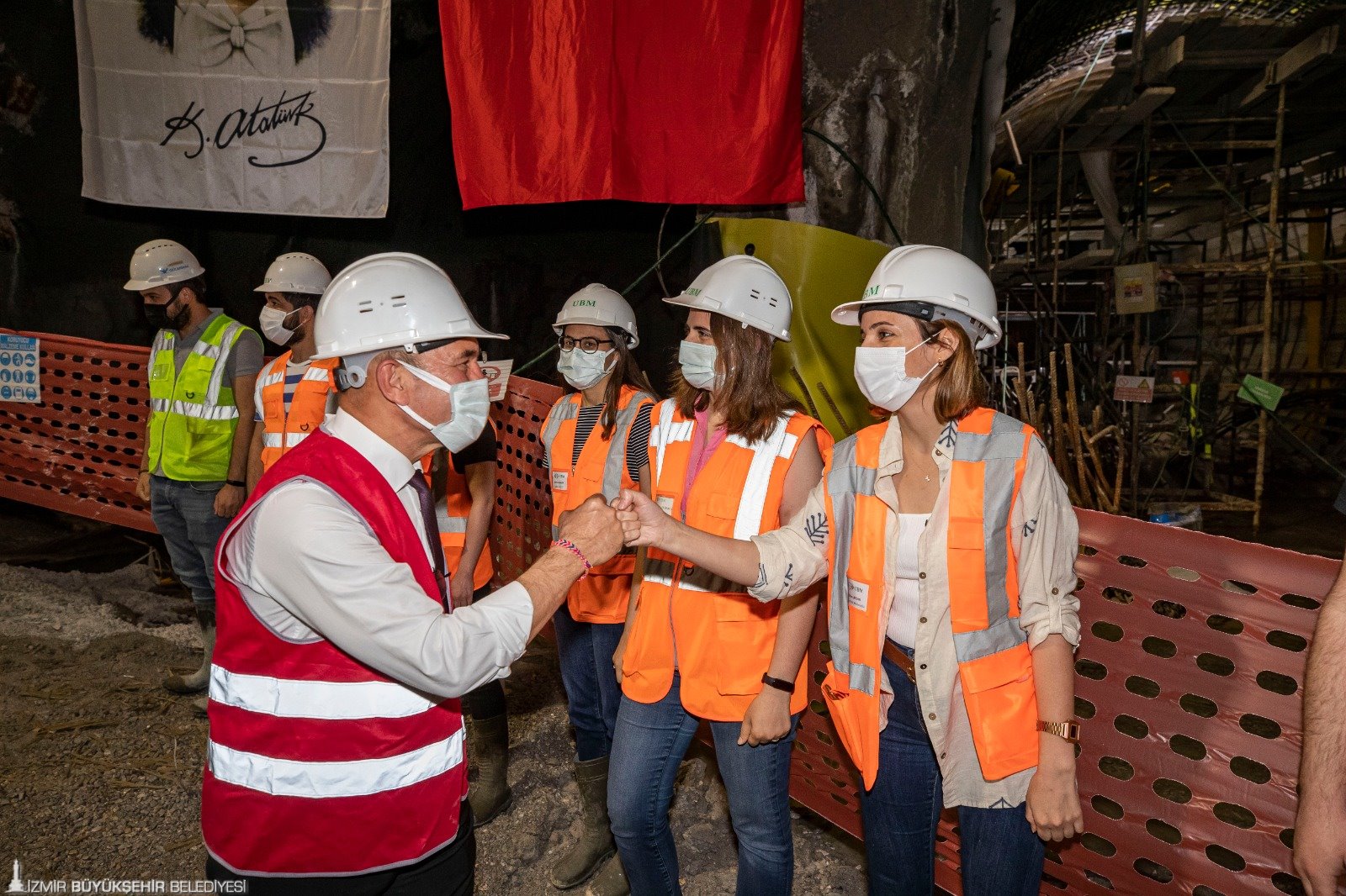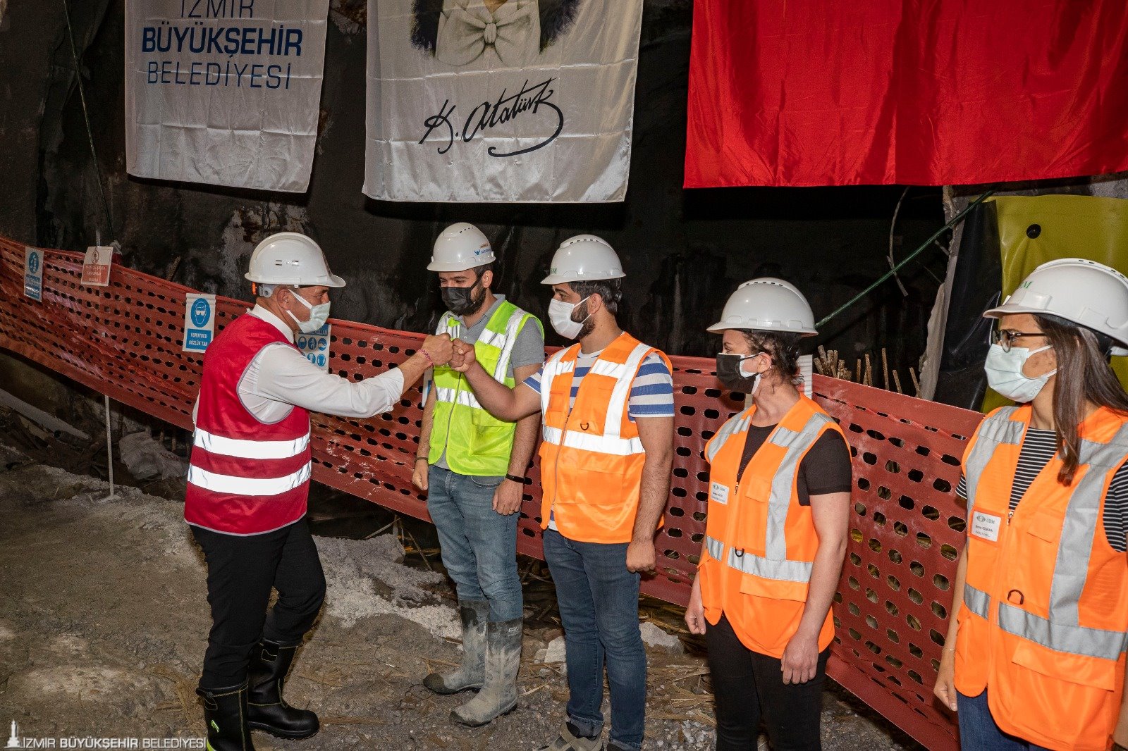 İzmir Büyükşehir Belediye Başkanı Tunç Soyer, Fahrettin Altay-Narlıdere metro hattının yapımında çalışan personelin de Ramazan Bayramı'nı kutladı. Ziyaret sırasında tünele inerek çalışmaları da inceleyen Başkan Soyer'e İzmir Büyükşehir Belediye Başkan Vekili Mustafa Özuslu, İzmir Büyükşehir Belediyesi Genel Sekreteri Dr. Buğra Gökçe, İzmir Büyükşehir Belediyesi Genel Sekreter Yardımcısı Eser Atak ile İzmir Büyükşehir Belediyesi Banliyö ve Raylı Sistem Yatırımları Dairesi Başkanı Mehmet Ergenekon eşlik etti. İşçilerle bayramlaşan Soyer, “Bu iş bittikten sonra çocuklarınıza anlatacağınız bir miras bırakıyorsunuz. Hepinizle gurur duyuyoruz” diye konuştu.