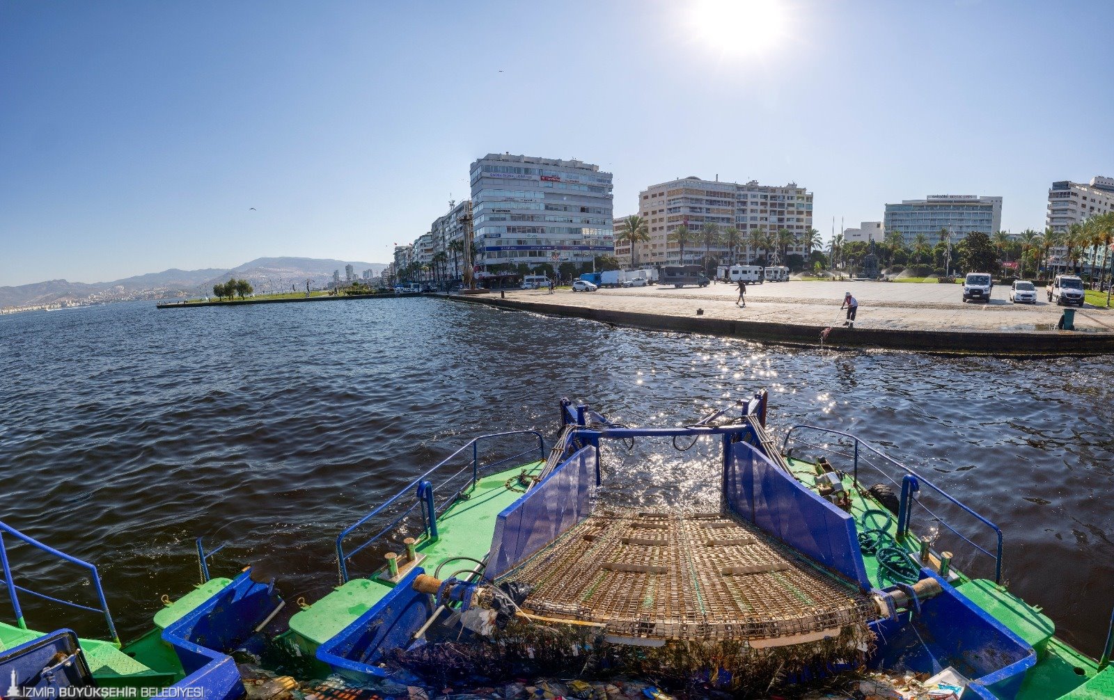 İzmir Büyükşehir Belediyesi ekipleri, sadece şehrin sokaklarını değil, deniz yüzeyini de süpürüyor. Özel donanımlı iki deniz süpürge gemisi, iki paletli amfibik (yüzergezer) araç, iki sıkıştırmalı çöp kamyonu ve Çevre-1 kontrol teknesi ile hem karadan hem de denizden atık toplama çalışmaları yürütülüyor. 2025 yılı içinde toplam 632 ton çöp toplandı.