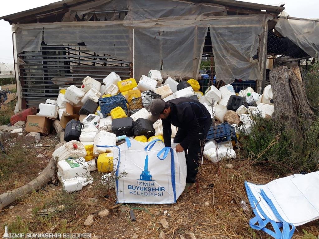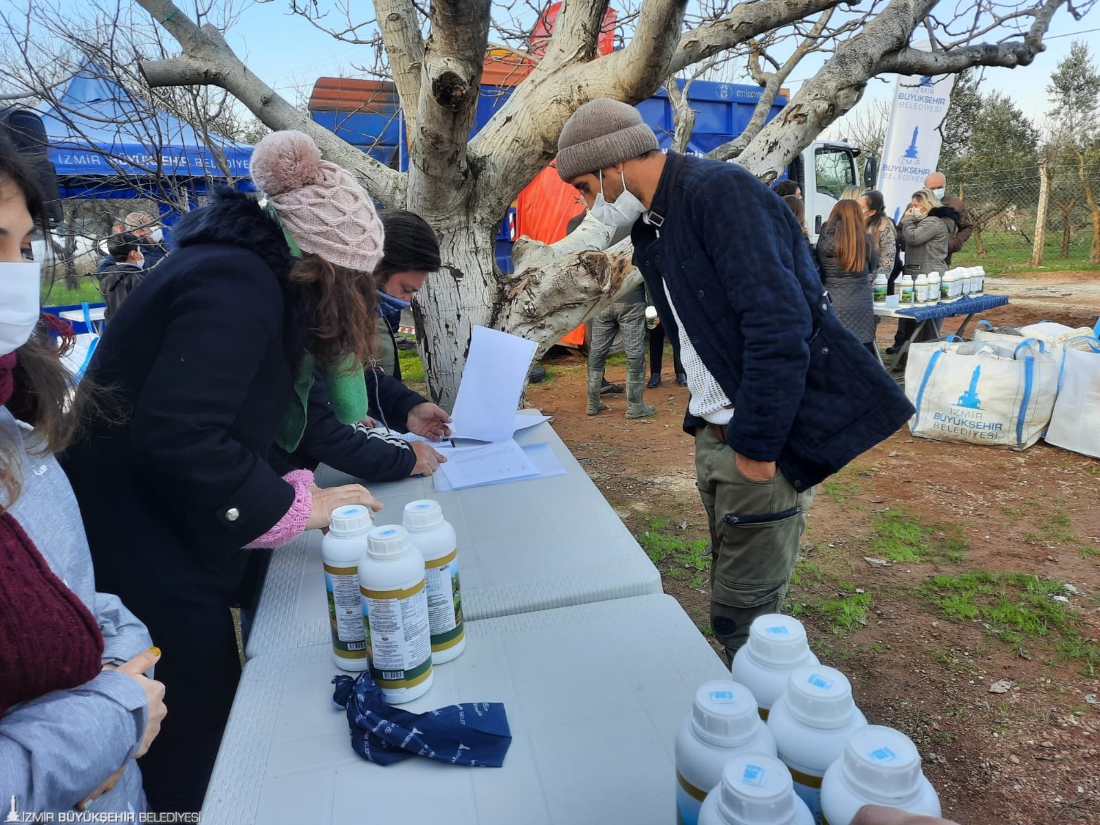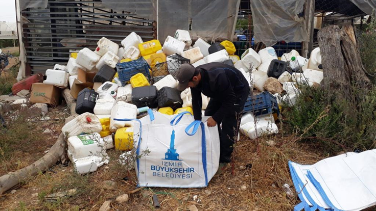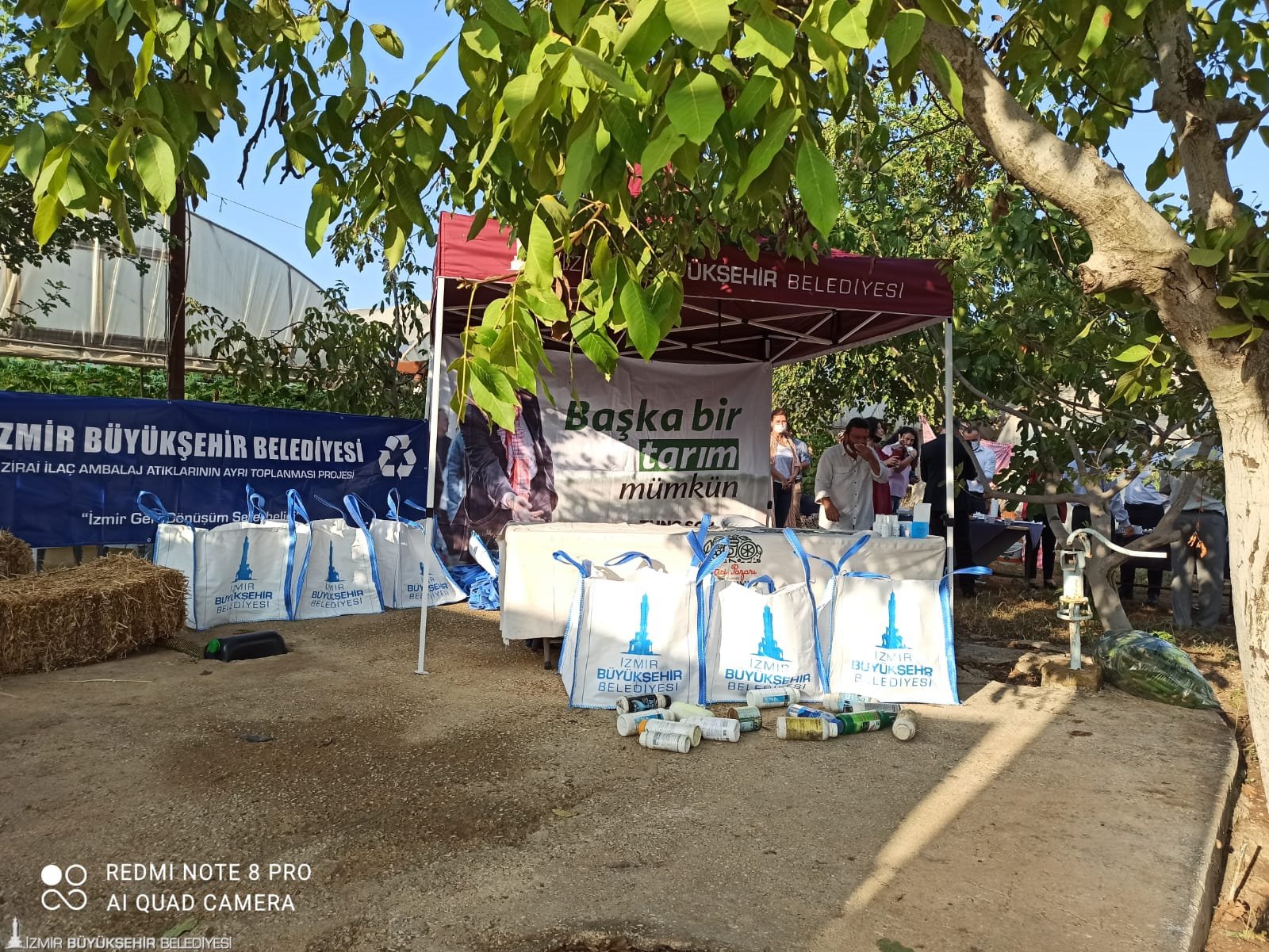 İzmir Büyükşehir Belediye Başkan Tunç Soyer’in “Başka Bir Tarım Mümkün” vizyonu doğrultusunda hayata geçirilen, halk ve çevre sağlığına zararlı zirai ambalaj atıklarının özel tekniklerle toplanması projesı sürüyor. Menderes Değirmendere Köyü’nde başlatılan projeyle iki yılda 4 bin 465 kilogram zirai ambalaj atığı geri dönüşüme dahil edilerek ekonomiye kazandırıldı. Ambalaj atıklarını Büyükşehir Belediyesi’nin dağıttığı özel torbalarda biriktiren Değirmendereli 70 üreticiye her torba karşılığında topraklarının daha kaliteli ve verimli olmasını sağlayacak bir litre organik sıvı solucan gübresi dağıtıldı.