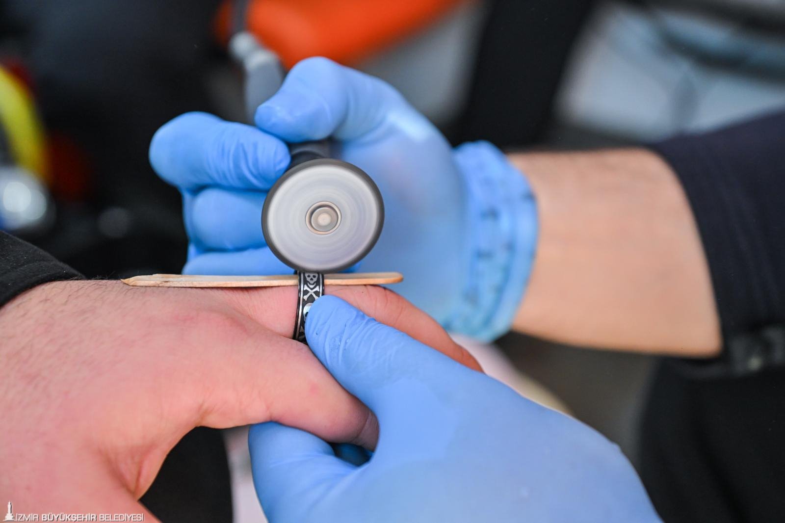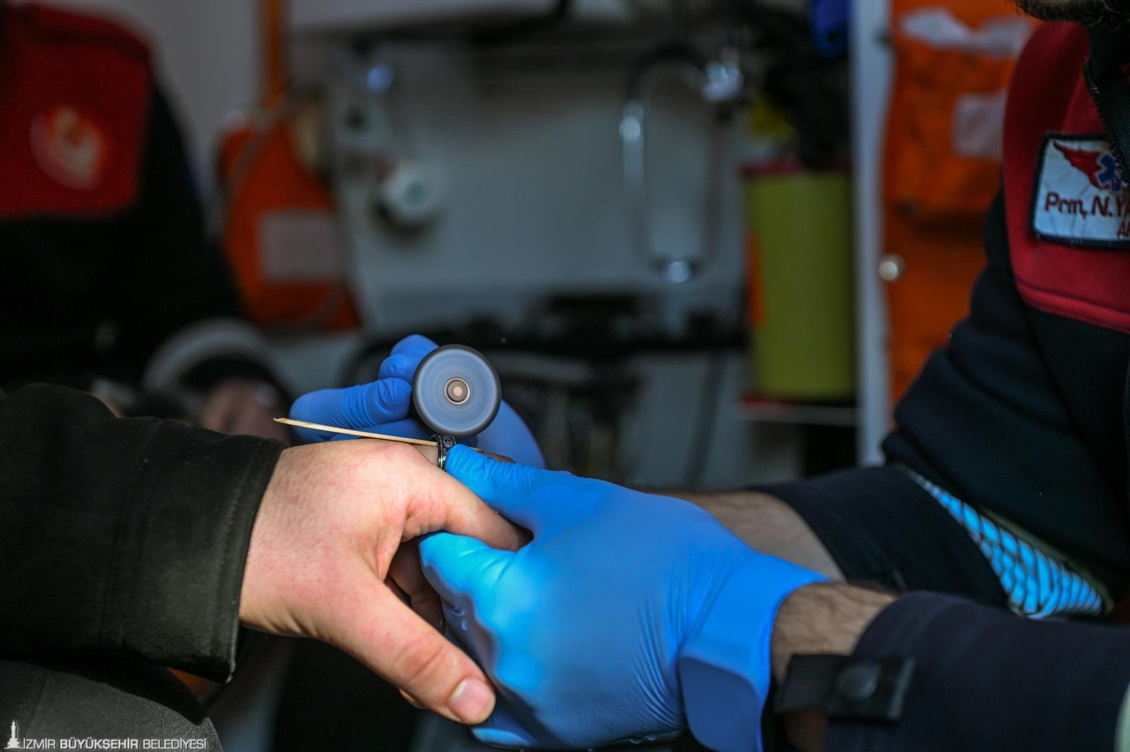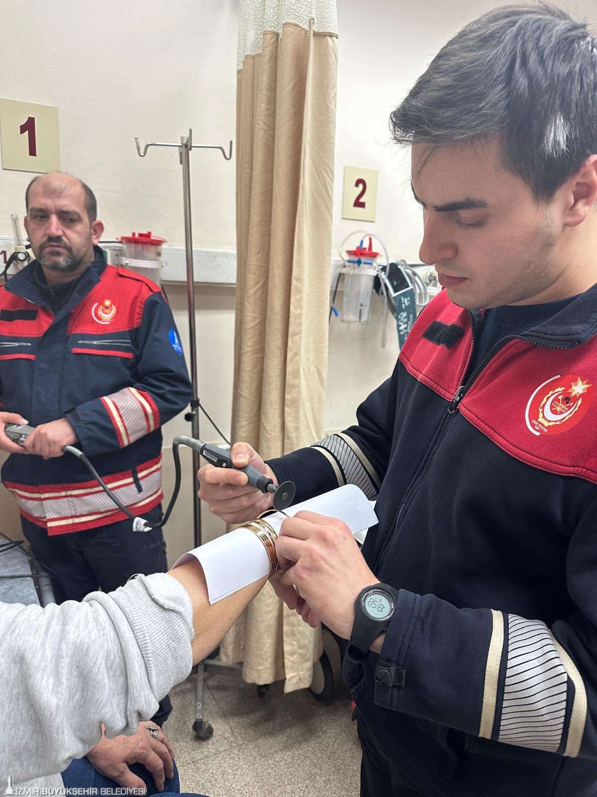 İzmir Büyükşehir Belediyesi İtfaiye Dairesi Başkanlığı Arama Kurtarma Şube Müdürü Şenol Dereköy, İzmir’de yalnızca insanlara değil tüm canlılara titizlikle hizmet verdiklerini belirtti. En sık karşılaşılan vakaların başında parmakta yüzük sıkışmasının geldiğini ifade eden Dereköy, “Yüzük parmağı sıkıyor, parmak hızla şişiyor ve kişi ciddi acı yaşıyor. Basit gibi görülüyor ama acıyı yaşayan bilir. Müdahale geciktiğinde ise ciddi doku kayıpları oluşabiliyor” dedi. Dereköy, parmakta yüzük sıkışması ve vücuda cisim batması gibi vakaların, görevli paramedikler tarafından ileri düzey sağlık ve kurtarma operasyonları kapsamında ele alındığını da vurguladı.