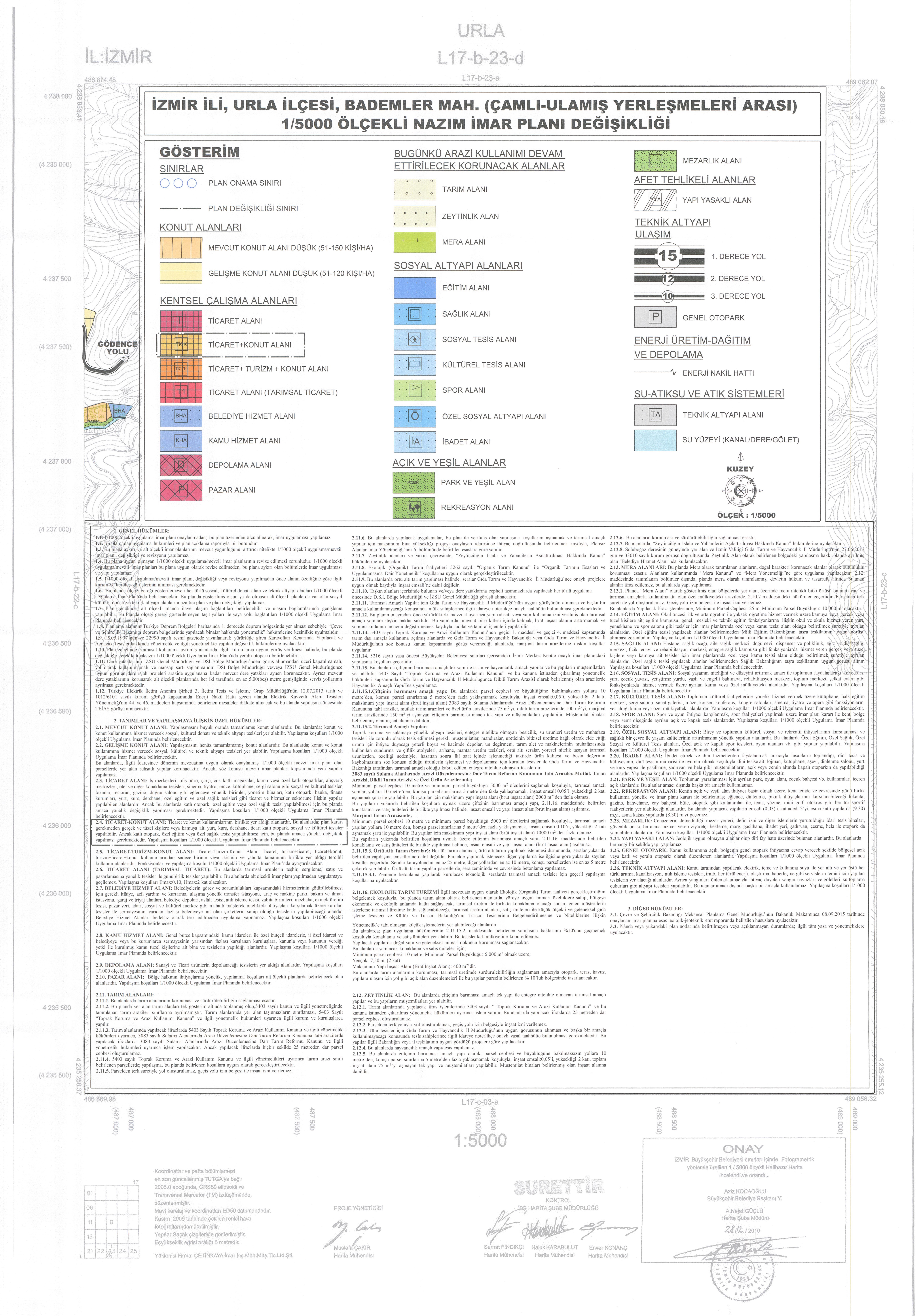 Urla ilçesi, Bademler Mahallesi, (Çamlı-Ulamış Yerleşmeleri arası) 1/1000 ölçekli Uygulama İmar Planı önerisinin, 1/5000 ölçekli Nazım İmar Planı kapsamında değişiklik gerektirecek hususlar içerdiği tespit edilmiş olup, söz konusu plan önerisi ve bölgeye ilişkin alınan Mahkeme Kararları kapsamında yapılacak düzenlemeler ile Belediyemiz mülkiyetindeki 262 ada, 49 parseldeki düzenlemeyi içeren, NİP: 3510687 plan işlem numaralı 1/5000 ölçekli Nazım İmar Planı Değişikliği