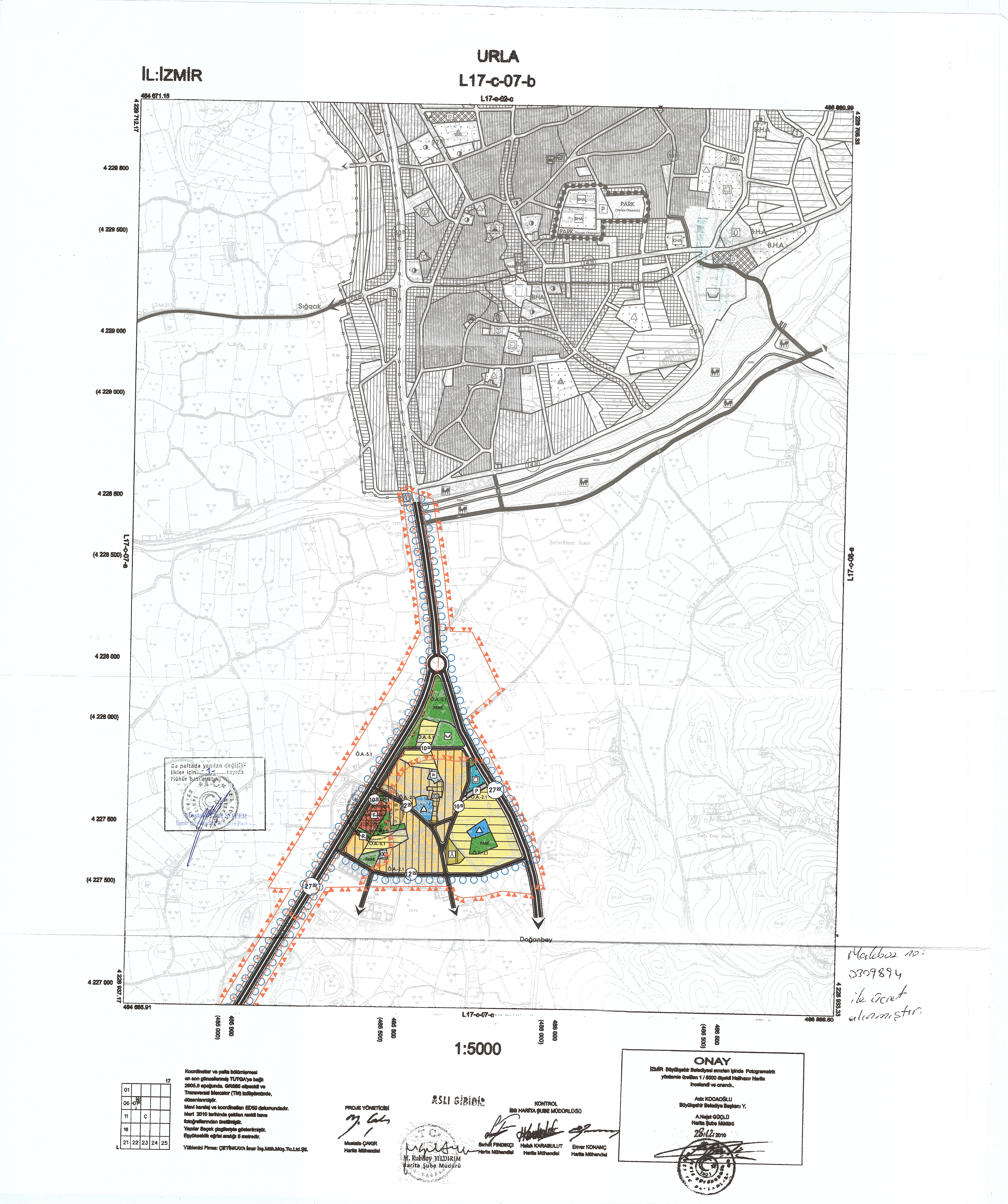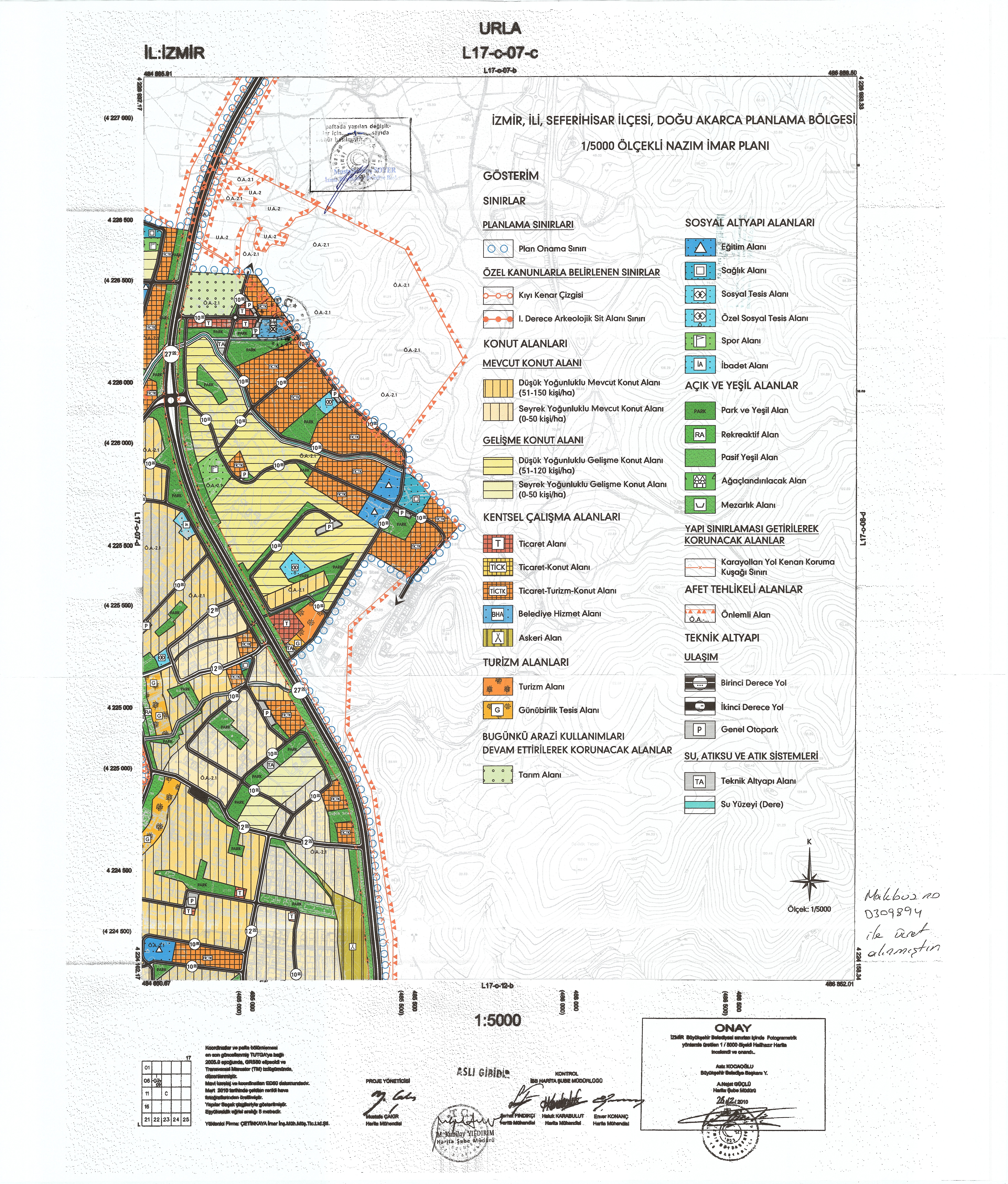 SEFERİHISAR ILÇESI, TEPECIK MAHALLESI, DOĞU AKARCA PLANLAMA BÖLGESI NİP:35971615 PLAN IŞLEM NUMARALI 1/5000 ÖLÇEKLI NAZIM İMAR PLANI