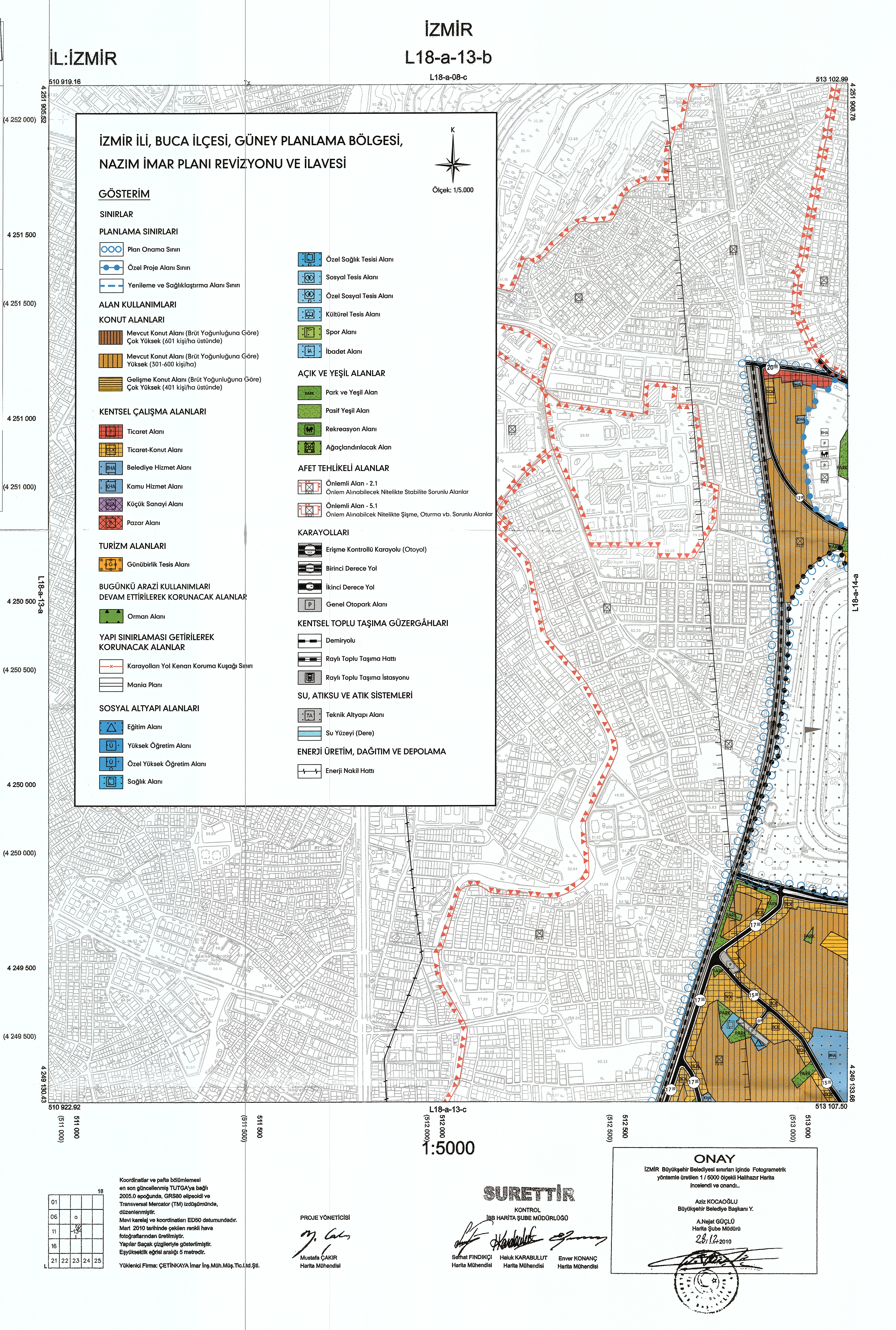 BUCA İLÇESI, İNKILAP, AKINCILAR, FIRAT, GÖKSU, İNÖNÜ, EFELER, YENIGÜN, YEŞILBAĞLAR, MUSTAFA KEMAL, VALI RAHMI BEY, DUMLUPINAR, KOZAĞAÇ, ÇAMLIKULE, ÇAMLIPINAR, ADATEPE, ATATÜRK, YILDIZ, BUCA KOOP, KURUÇEŞME MAHALLELERI GÜNEY PLANLAMA BÖLGESI, 1/5000 ÖLÇEKLI NAZIM İMAR PLANI REVIZYONU VE İLAVESI ÖNERISI UYGUN BULUNDUĞUNA ILIŞKIN HAZIRLANAN, BAKANLIĞIN NİP-351021286 PLAN IŞLEM NUMARALI 1/5000 ÖLÇEKLI NAZIM İMAR PLANI REVIZYONU VE İLAVESI, İZMIR BÜYÜKŞEHIR BELEDIYE MECLISI'NIN 14.07.2023 GÜN VE 05.761 SAYILI VE 14.08.2023 TARIH, 05.782 SAYILI KARARLARI ILE UYGUN GÖRÜLEREK BELEDIYE BAŞKANLIĞIMIZCA 11.12.2023 TARIHINDE ONANMIŞTIR.(1692920)