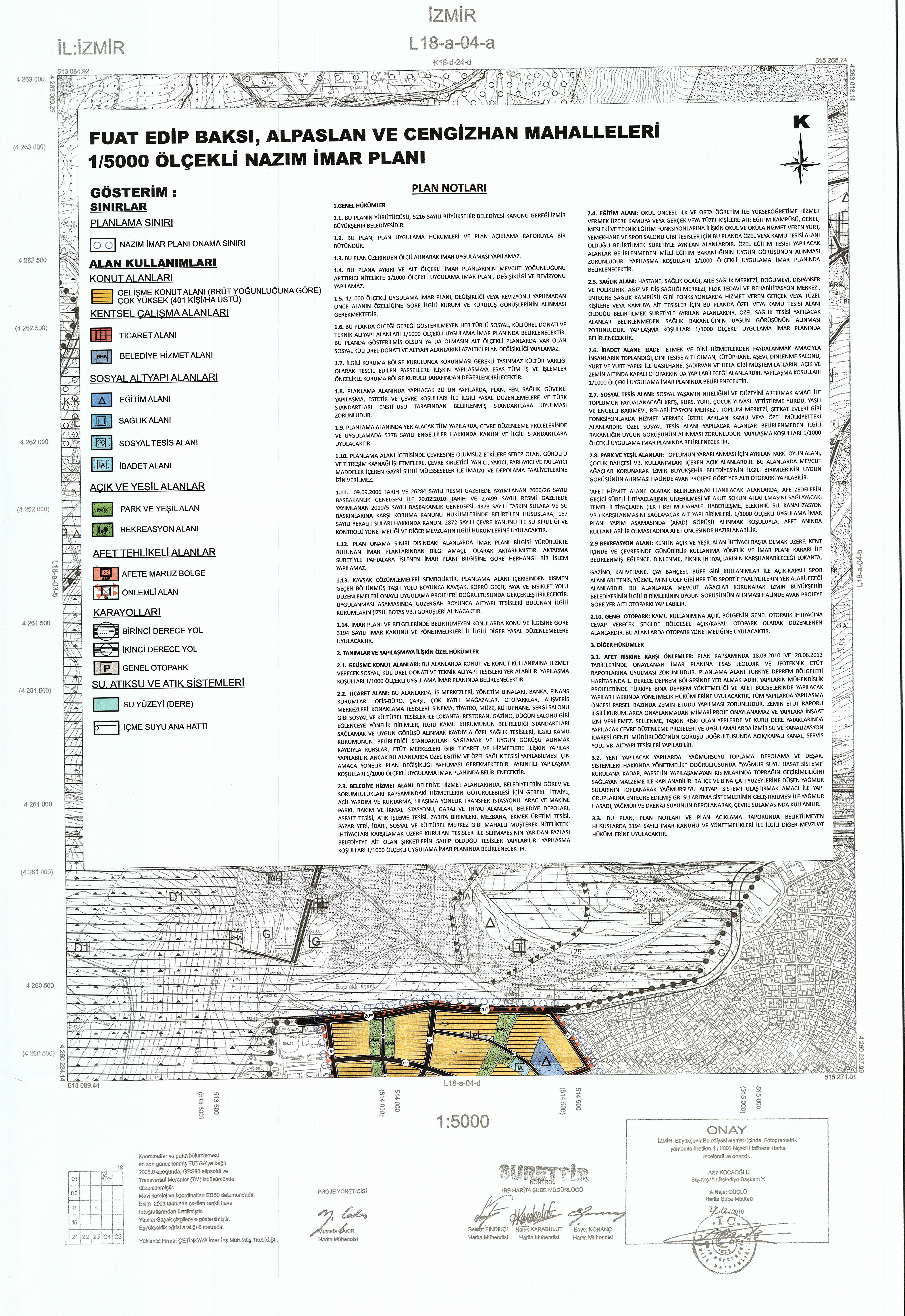 BAYRAKLI FUAT EDİP BAKSI VE CENGIZHAN MAHALLELERI IÇERISINDE KALAN YAKLAŞIK 60 HEKTARLIK ALANDA HAZIRLANAN, BAKANLIĞIN NİP 351083000 PLAN IŞLEM NUMARALI 1/5000 ÖLÇEKLI NAZIM İMAR PLANI, İZMIR BÜYÜKŞEHIR BELEDIYE MECLISIMIZIN 14.02.2025 TARIH VE 04.175 SAYILI KARARI ILE UYGUN GÖRÜLEREK BELEDIYE BAŞKANLIĞIMIZCA 07.04.2025 TARIHINDE ONAYLANMIŞ OLUP AYNI TARIHLI 2493620 SAYILI YAZIMIZ ILE KURUMLARA DAĞITIMI YAPILMIŞTIR.