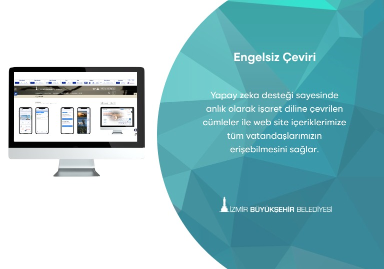 Engelli vatandaşlarımızın sosyal yaşama katılımı önümüzde önemli bir sorun olarak gündemini korurken, İzmir Büyükşehir Belediyesinin geliştirmiş olduğu “ENGELSİZ ÇEVİRİ” projesi ile hemşehrilerimizin engellerini kaldırıp şehrindeki haberleri yada kültür – sanat çalışmaları hakkında ister betimleme isterse de işaret dili ile anlatımı ile bilgi akışını sağlamaktır. Web sayfamıza giriş yaptığımızda karşımıza gelen sol taraftaki iki adet seçeneğimiz çıkıyor. İşaretli alana tıkladığımızda karşımıza gelen seçeneklerde web sayfamızdaki Metin Boyutu, Metin Boşluğu, Satır Yüksekliği, Font seçimi, İmleç Seçimi, Kontrast ayarı, Ekran Okuma Hızı ve Animasyon seçenekleri karşımıza çıkıyor. İşaret Dili Çevirici uygulaması aktif edildiğinde seçili olan metnin yine sol tarafta açılan pencerede “Engelsiz Çeviri” programında işaret dili anlatımı başlayacaktır.