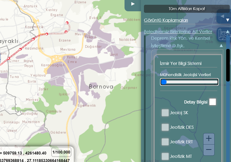 Öncelikli olarak 30 Ekim 2020 yılında kentimizde yaşanmış olan depremde en çok etkilenen ilçelerimizden Bayraklı’dan başlayarak, bölgede yapılmış olan imara esas zemin etüt raporları sayısallaştırılarak sisteme entegre edilmeye başlanılmıştır. Bu amaçla sisteme, her bir sondaj noktasına ait yüklenici firma, teknik personel bilgisi, arazi ve laboratuvar deney sonuçlarına ait veriler işlenmektedir. Aynı şekilde 30 ilçemizden alınan farklı zemin ve jeolojik özelliklere sahip bölgelerden 250’şer adet zemin ve temel etüt raporları da sayısallaştırılarak sisteme işlenmektedir. Buna paralel sahada yapılan jeofizik çalışmaları ile DES, Sismik- MASV, Microtremor vb. ölçüm veri girişleri sisteme aktarılarak zemin büyütmesi, hakim titreşim periyodu, zemin sınıfı vs. gibi parametrelerin bölgesel ölçekte bütüncül olarak belirlenmesi amaçlanmaktadır.