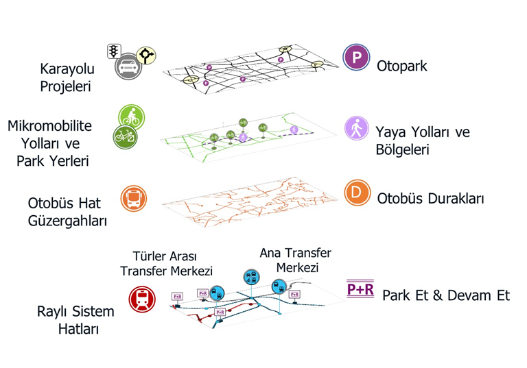 • Türler arası transfer merkezleri, ana transfer merkezleri ve toplu taşıma entegrasyon planlaması,